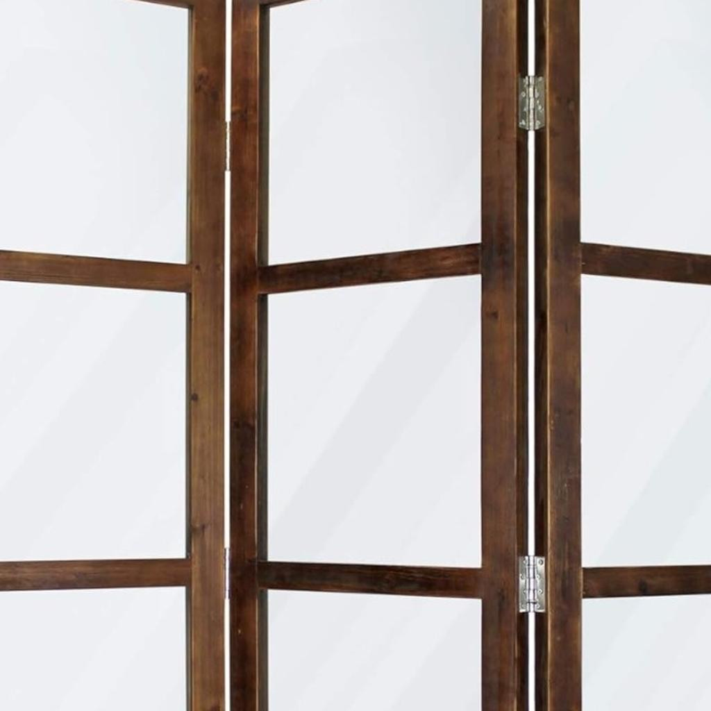 this 3 panel screen offers a creative way to carve out a space in your room without disrupting the existing elegant setting. this screen will easily serve as a temporary addition to your decor with exciting style. it features glass screen with stylish vintage touch. the overall structure is complemented with wood frame with natural wood accent that brings home inspiring whitewashed vibe. 3 panel screen mirror screen
