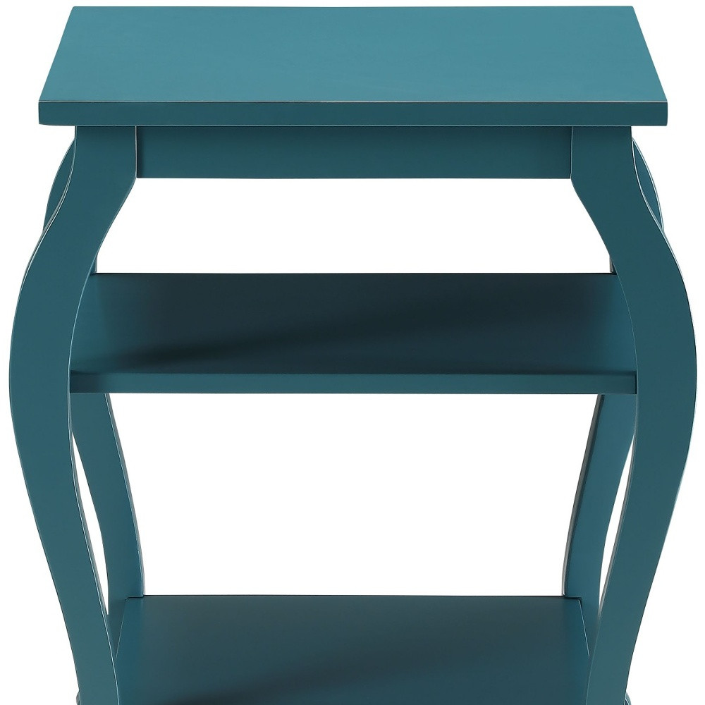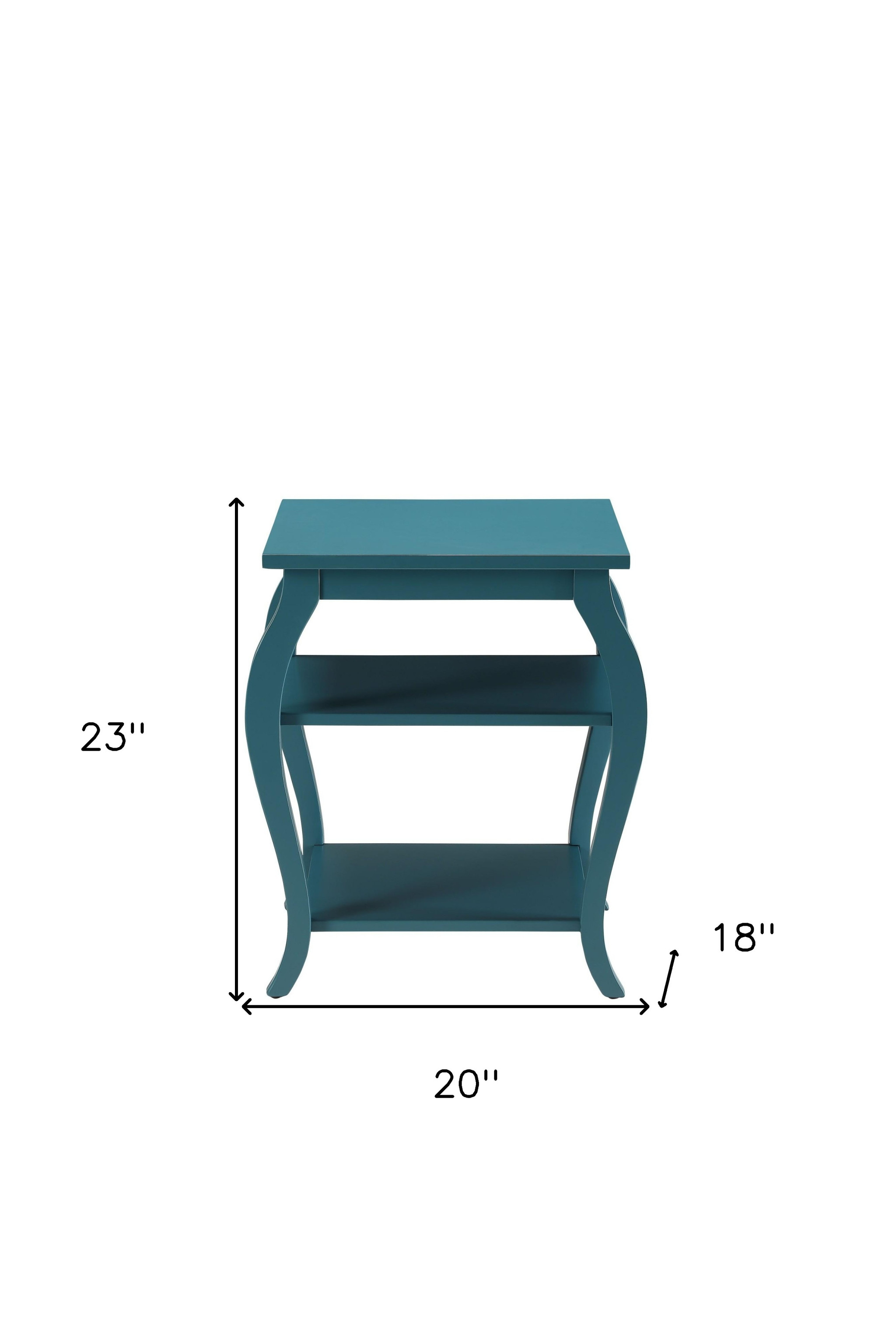 This updated modern side or end table brings a traditional touch and eclectic flair to every home setting. The chic appearance of our Bow Leg Square End or Side Table will brighten up your room. This versatile piece works great as an end table, side table, or nightstand. Two bottom shelves add additional storage and display while the overall piece still takes up a compact footprint. Features include a rectangular top, and stylish wooden cabriole/bowed legs. Finished all around this piece can face any direction. This fun and colorful accent piece will surely make a functional and inspiring design statement. 20" X 18" X 23".