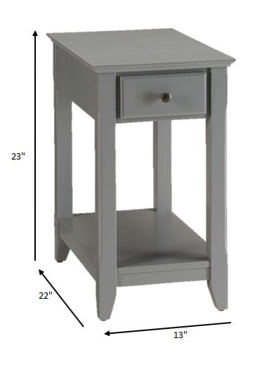 Distinctive in style the 23-inch gray solid and manufactured wood end table radiates a versatile charm. Made of solid and manufactured wood, the gray coloration throughout gives this piece an updated and refreshing look. Side tables are a great way to flank your sofa, use as an accent next to your favorite chair, or can even be used bedside. You can also use it as an entryway table to hold your keys. 23-inch H x 13-inch W x 22-inch D