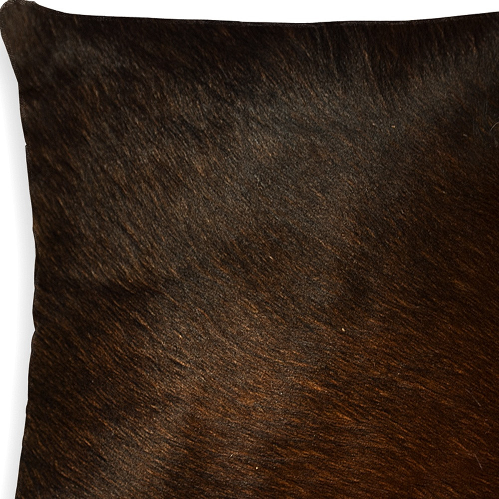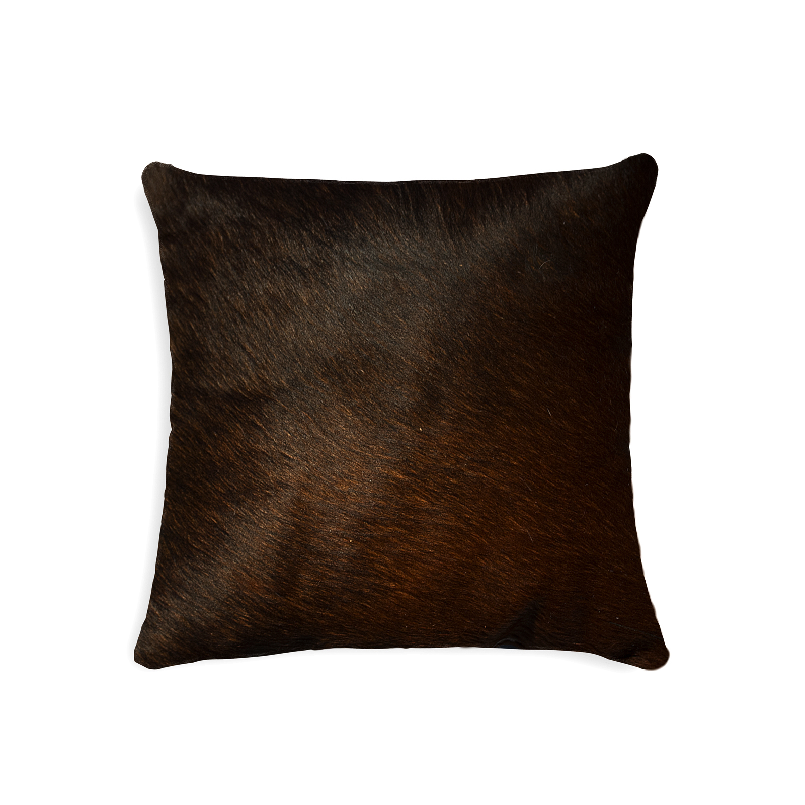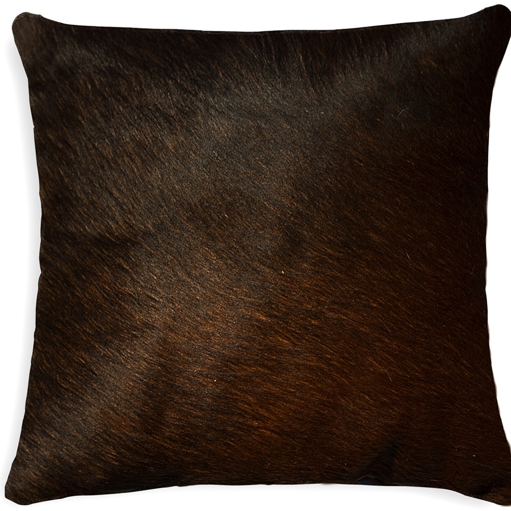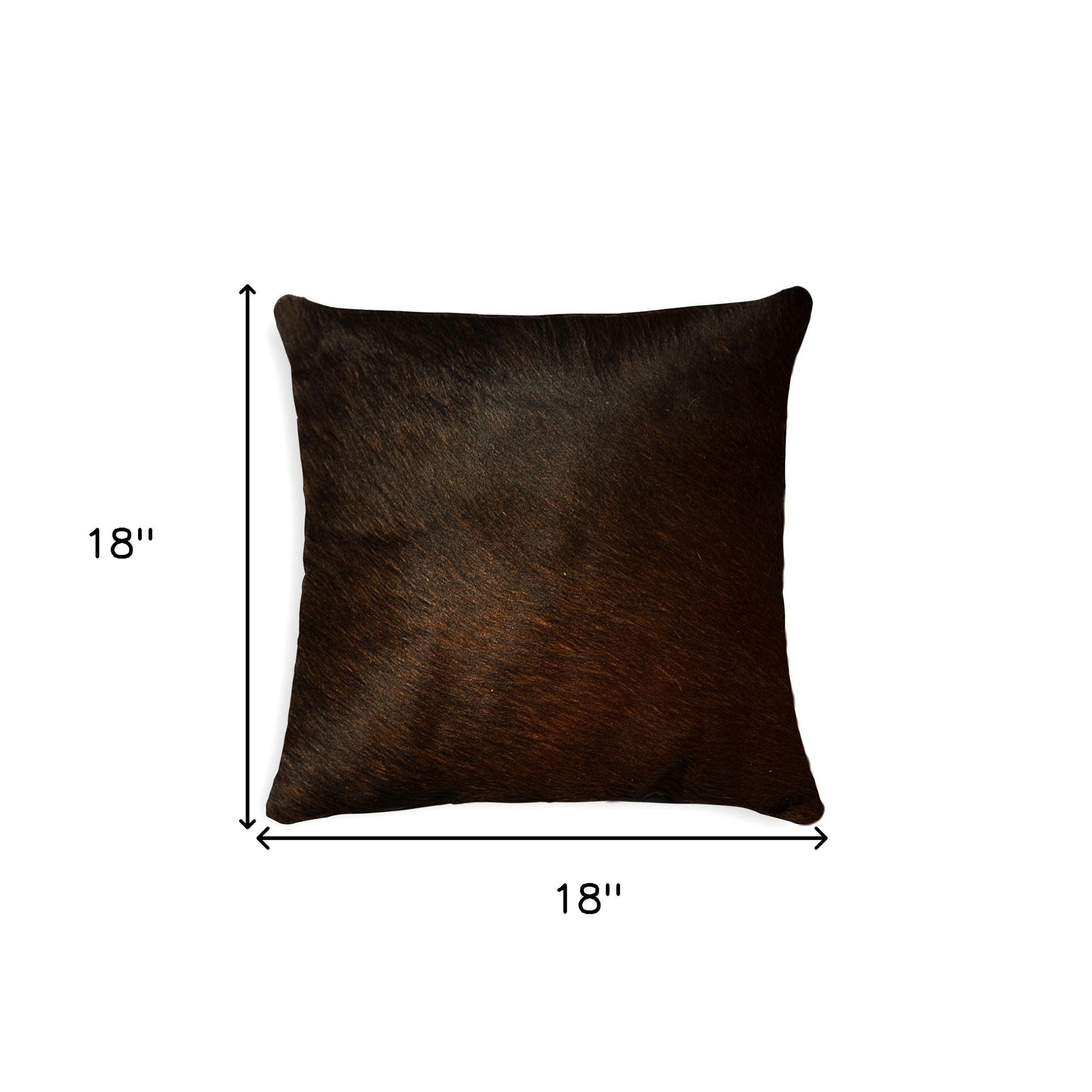 Unique and decorative, this comfortable 18-inch chocolate cowhide throw pillow will leave a lasting impression. This luxuriously soft pillow is expertly made of high grade, genuine cowhide in a chocolate coloration. Elegantly chic, this pillow is the epitome of luxury. Super soft and built to hold its shape, this cotton pillow is a great option. Great to use on its own or mix with other decorations for the perfect look. Decorative pillows are a great way to change up the look and feel of your space easily and quickly. 18-inch H x 18-inch W x 5-inch D