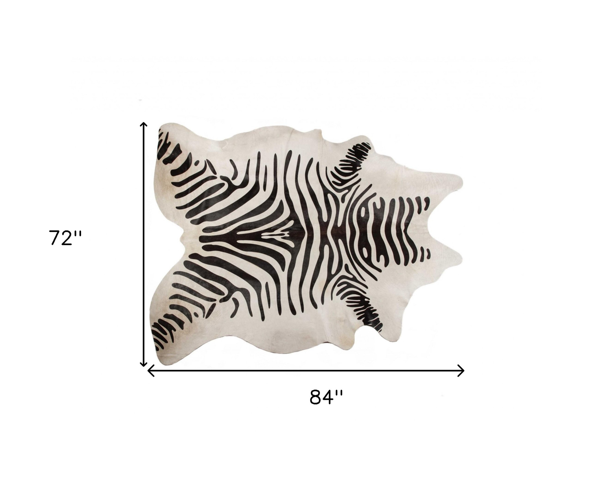 Add great coloration and comfortable texture to your space with this 6-foot x 7-foot black and off white cowhide zebra print area rug. Crafted from cowhide fibers that give this piece premium texture, refinement, and appeal. Rugs are a great way to showcase your style, hide imperfections, warm your home and reduce noise. This larger sized, contemporary styled rug is ready to create a focal point or statement piece in your room. 72-inch h x 84-inch w x 0.25-inch d.