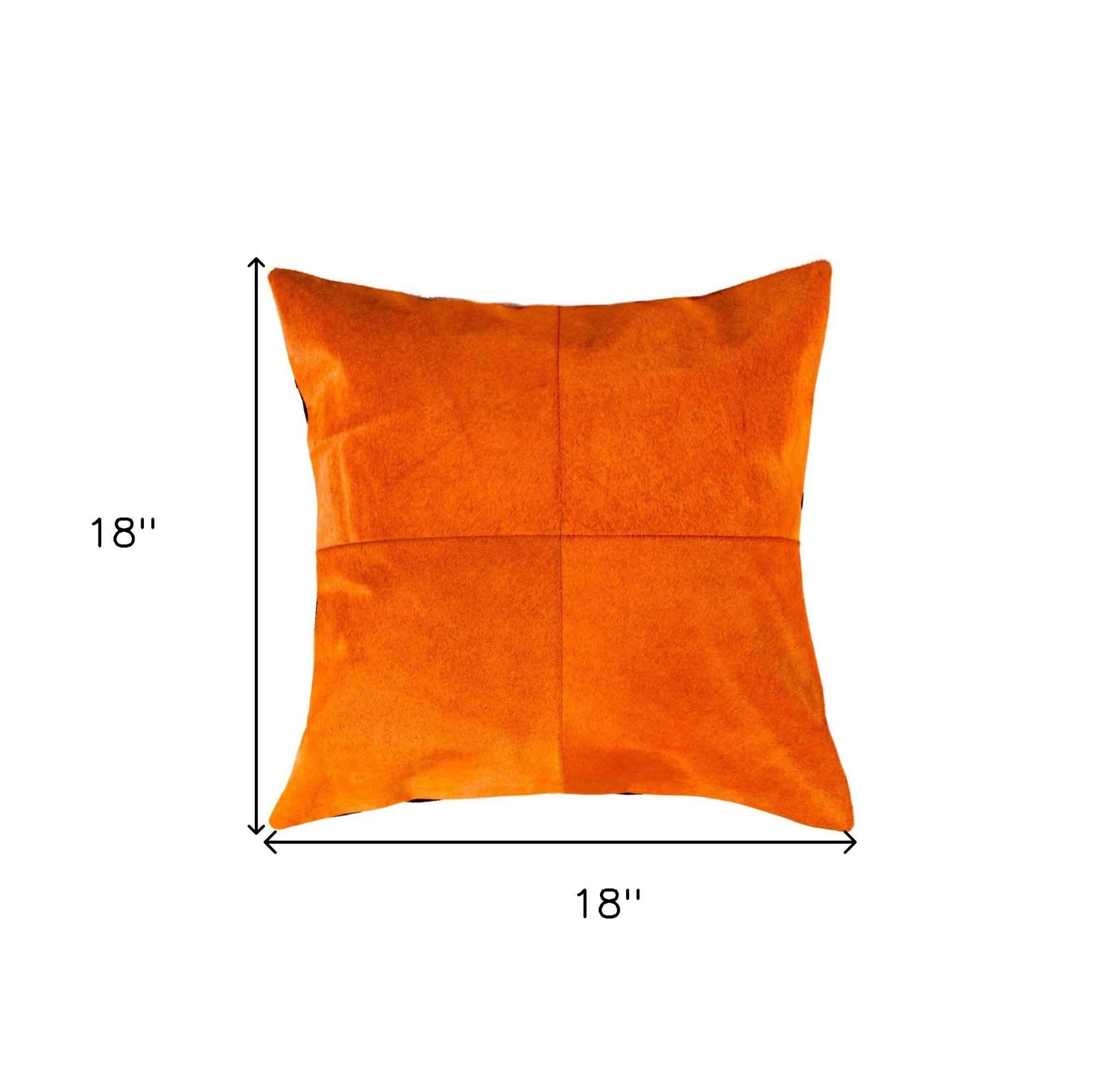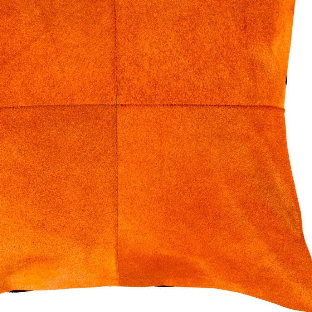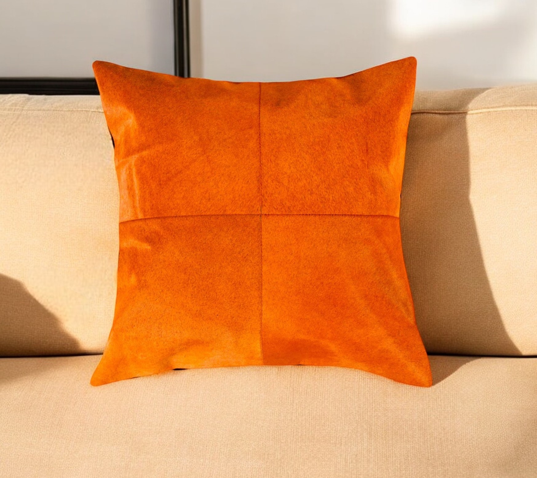 Unique and decorative, this comfortable 18-inch orange cowhide throw pillow will leave a lasting impression. The luxurious orange coloring of the genuine cowhide will add dimension and texture to your space. Elegantly chic, this pillow is the epitome of luxury. Super soft and built to hold its shape, this cotton pillow is a great option. For anyone that loves to decorate or accent their space with color and texture. Decorative pillows are a great way to change up the look and feel of your space easily and quickly. 18-inch H x 18-inch W x 5-inch D