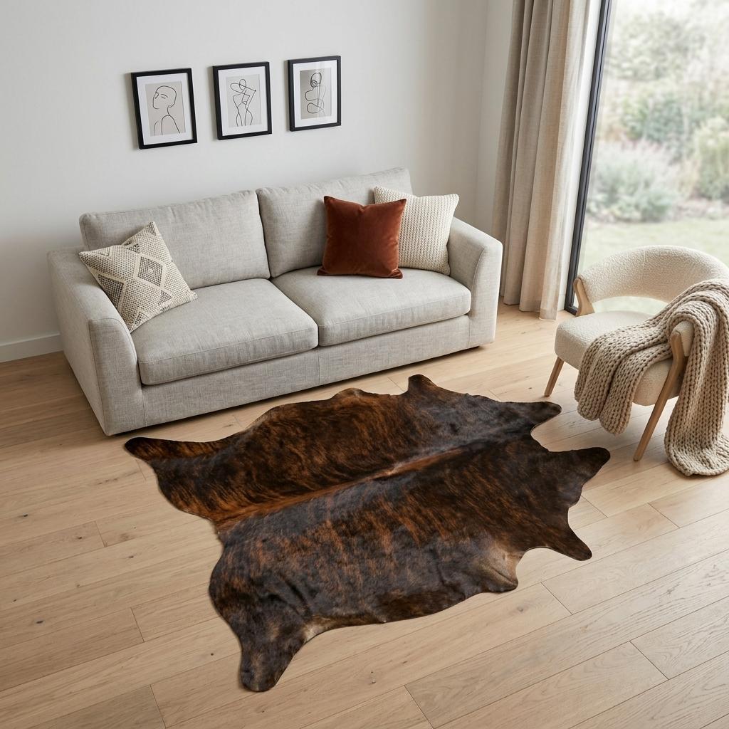 Add some artistry to your room with this 6-foot x 7-foot brown and black cowhide cowhide print area rug. Crafted from cowhide fibers that give this piece premium texture, refinement, and appeal. Rugs are a great way to showcase your style, hide imperfections, warm your home and reduce noise. This larger sized, contemporary styled rug is ready to create a focal point or statement piece in your room. 72-inch h x 84-inch w x 0.25-inch d.