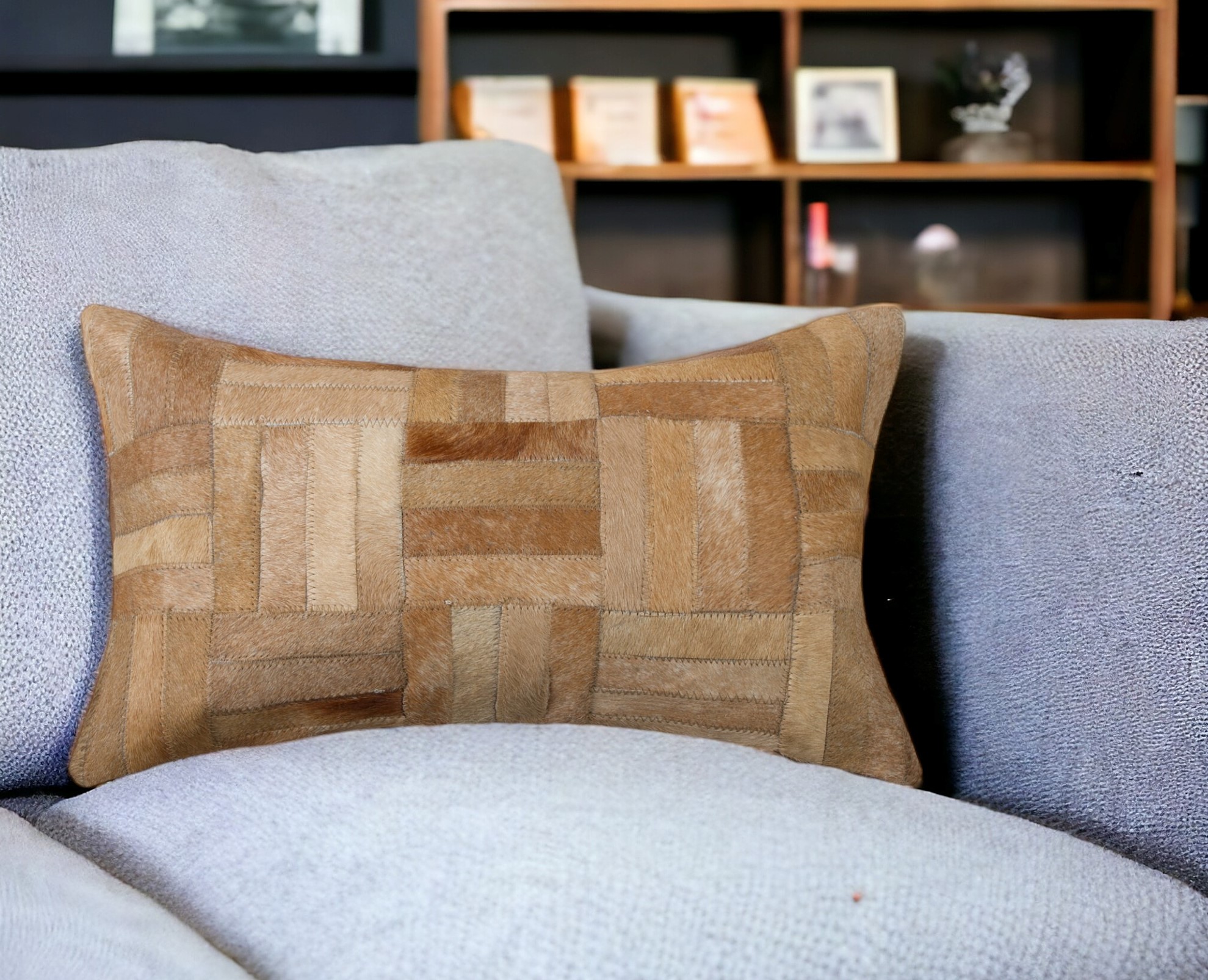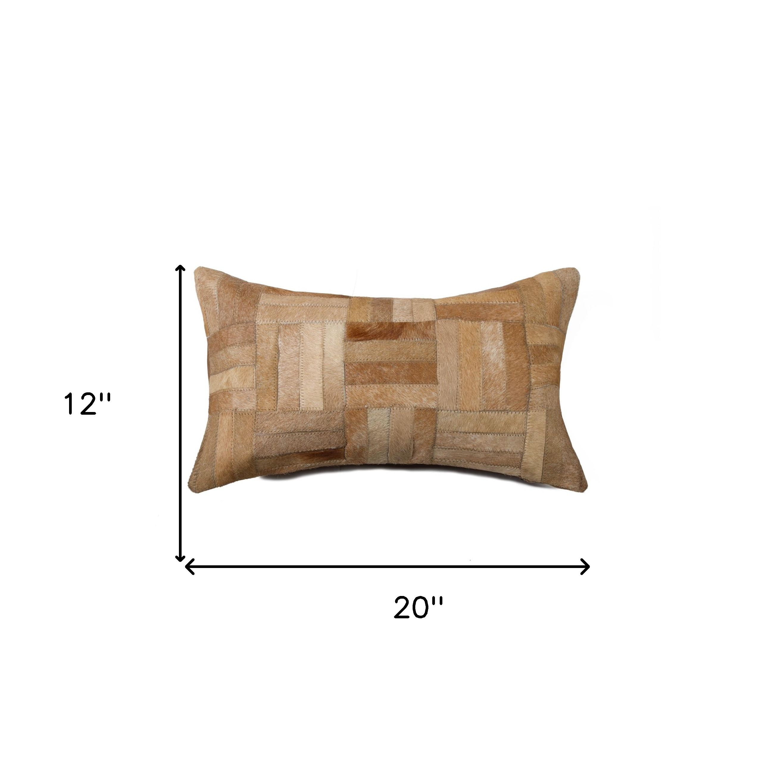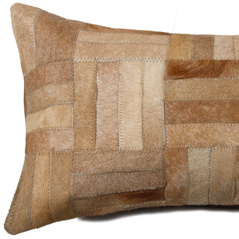 Unique and decorative, this comfortable 12-inch x 20-inch natural cowhide throw pillow will leave a lasting impression. This luxuriously soft pillow is expertly made of high grade, genuine cowhide in a natural coloration. Elegantly chic, this pillow is the epitome of luxury. Super soft and built to hold its shape, this cotton pillow is a great option. Great to use on its own or mix with other decorations for the perfect look. A great decorative accessory for your favorite chair, to accent your sofa, or to use as part of your bed ensemble. 12-inch H x 20-inch W x 5-inch D