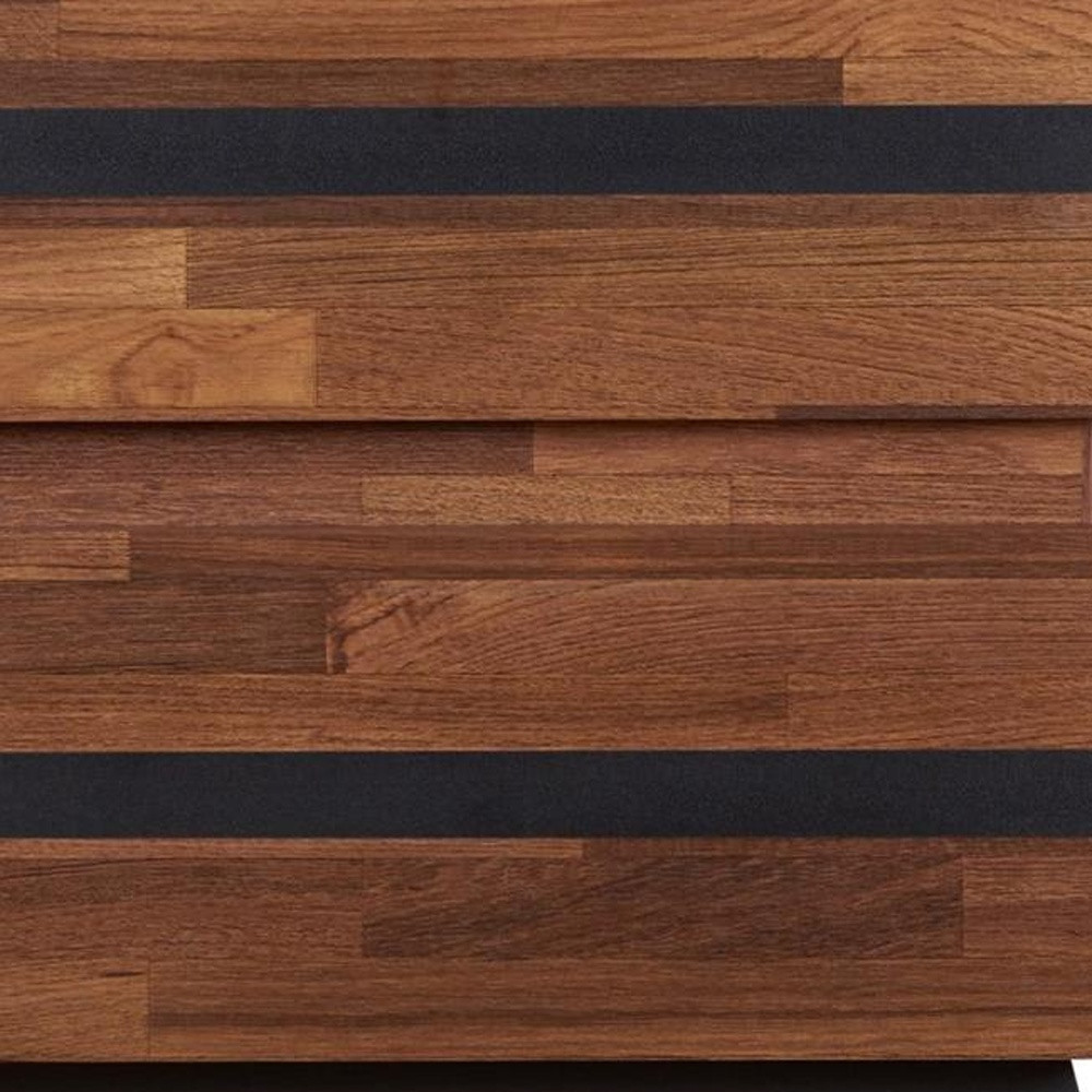 Optimize your space and add some charm to your room with the 23" black and brown end table with two drawers. The black coloration of the high quality iron base marries nicely with the brown manufactured wood top. Includes 2 easy open drawers for storage of the small essentials. An ideal location for placing your snacks and drinks, and a place to keep your lamp, frames, or other accessories. This versatile table is a great accent for most any room. 23" H x 18" W x 20" D