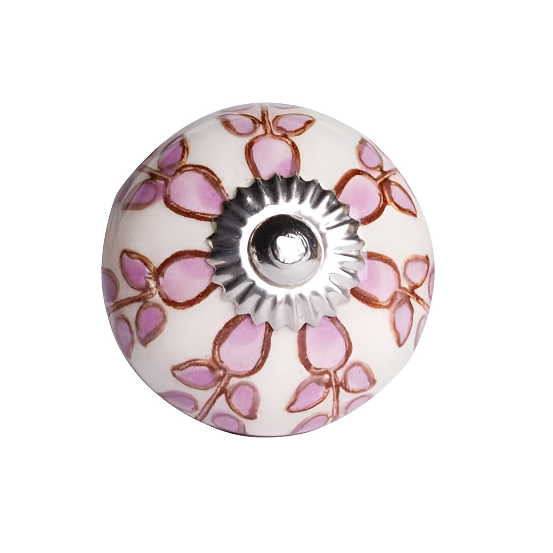 Give your drawers or cabinets a facelift with this set of twelve pink white and burgundy floral ceramic drawer pull knobs. Hand-painted by talented artisans, these knobs will add a touch of artisanal design. Each round knob showcases a beautiful floral theme, making it the perfect accent for any room. Crafted from high-quality ceramic, these durable knobs promise both elegance and functionality. With screws included, installation is quick and easy, allowing you to enhance your decor effortlessly. Transform your space with these unique and charming decorative pieces. 1.5-inch h x 1.5-inch w x 1.5-inch d.