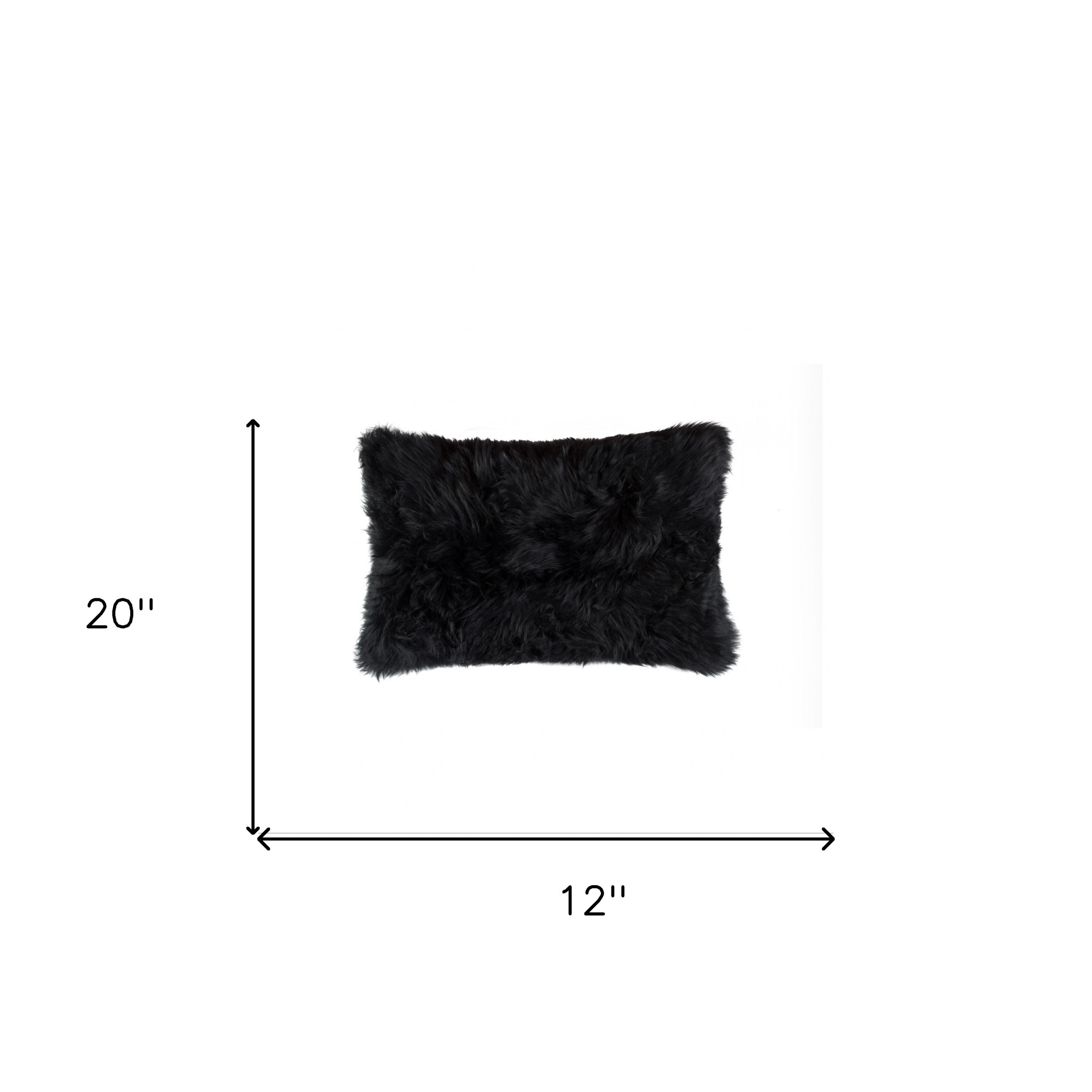 This 12-inch x 20-inch black sheepskin lumbar throw pillow will add a beautiful decorative accent to your decor. Created with the highest quality genuine New Zealand sheepskin that will a touch of luxury and glamour to your space. This soft polyfill filled pillow not only is decorative but made to be comfy and cozy all day long. Great to use on its own or mix with other decorations for the perfect look. A great decorative accessory to add color and dimension to your favorite chair, accent your sofa, or to use as part of your bed ensemble. 12-inch h x 20-inch w x 5-inch d.
