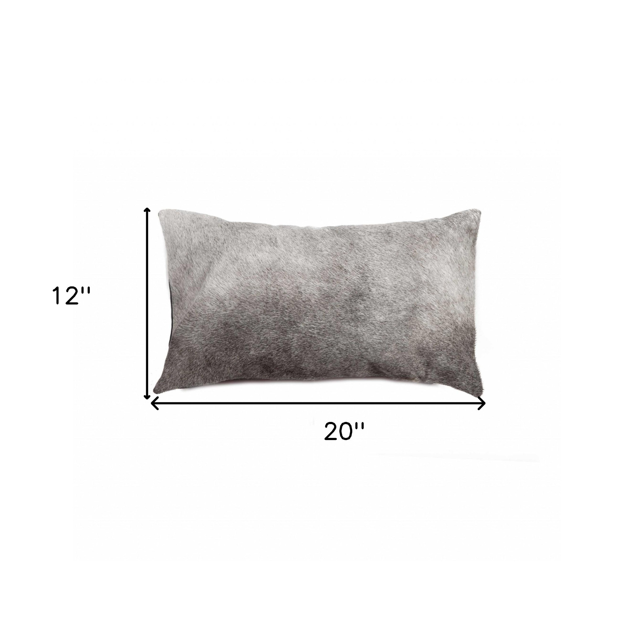 Bring a bit of fashion and zip to your space with this eye-catching and comfy 12-inch x 20-inch gray cowhide pillow. The luxurious gray coloring of the genuine cowhide will add dimension and texture to your space. Elegantly chic, this pillow is the epitome of luxury. Super soft and built to hold its shape, this polyfill pillow is a great option. Great to use on its own or mix with other decorations for the perfect look. Decorative pillows are a great way to change up the look and feel of your space easily and quickly. 12-inch H x 20-inch W x 5-inch D