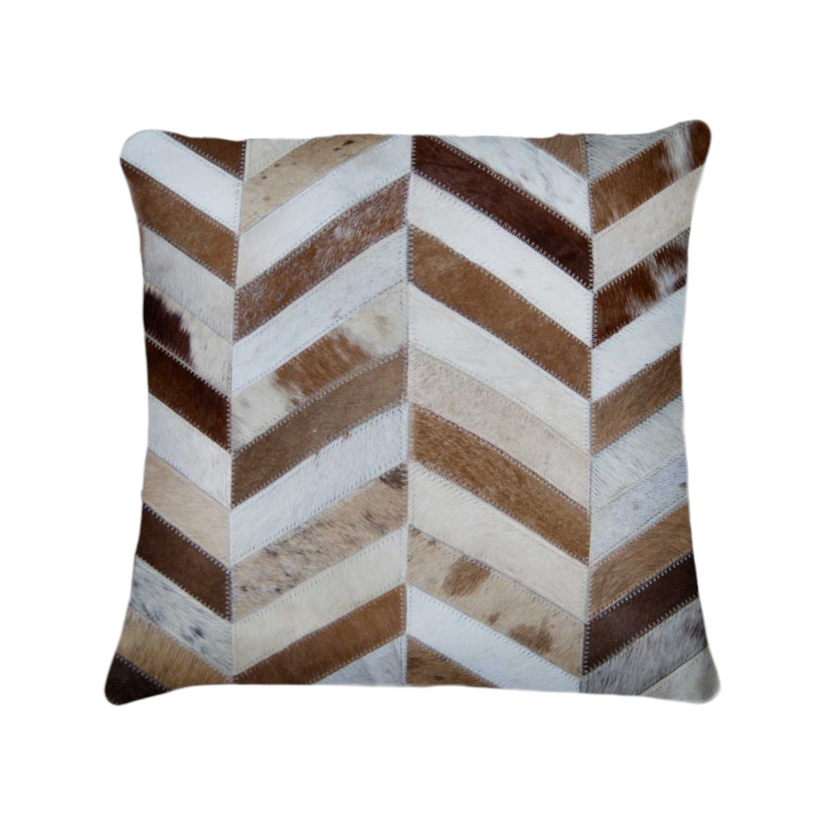 This set of two natural and brown chevron cowhide throw pillows will add a beautiful decorative accent to your decor. The luxurious sheen and softness of the genuine cowhide on these pillows will add dimension and texture to your space. Elegantly chic, these pillows are the epitome of luxury. Super soft and built to hold its shape, this polyfill pillow is a great decorative accessory for your favorite chair, to accent your sofa, or to use as part of your bed ensemble. 18-inch H x 18-inch W x 5-inch D