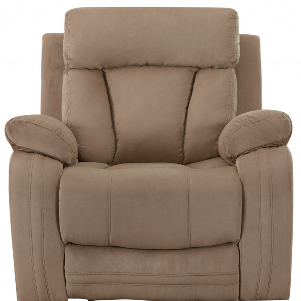 Bring both modern appeal and practicality into the look and feel of your home with this elegant and functional recliner chair. Plus, its exceptionally well-made. This chair is a high grade piece, which has a comfy beige microfiber upholstery and a steel base. It will definitely leave a fantastic impression on your friends and guests. Additionally, this chair features a recliner mechanism with a manual crank, which will ensure even more relaxation. It truly mixes luxurious rest with durability perfectly. To ensure this, it has a foam density of 2.4 for the seat and the arm, and the foot rest features a foam density of 2.0. The seat also includes a pocket coil with foam for added ease. To complete the lovely look, it shows off a gorgeous style ideal for the contemporary home. As for measurements, theyre 40" for height, 39" for width, and 38" for depth, and it weighs 77 pounds. When you need to unwind and loosen up after a long day, this chair is the best you can find. It will fit in excellently with any interior, and would be a marvelous decoration for your home.