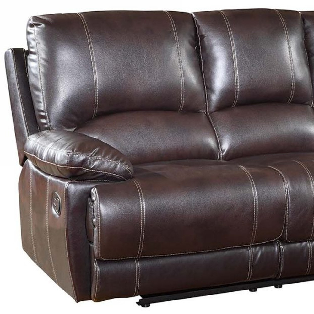 Designed for comfort and good looks, this 89-inch brown microfiber reclining sofa with black legs is a great option to anchor your space. Built to last, this solid color reclining is upholstered with microfiber that is designed to be soft, resilient, easy to maintain, and stand the test of time. Solid colors give you lots of decorative options and are easy to work into your decor scheme. Sinuous springs construction gives this piece strong support and makes it comfortable to sit even for long periods of time. Pillow top arms offer a comfy place to rest. Black metal legs effortlessly elevate the room and add a touch of contemporary design. A great showpiece for your room, this sofa is a must have. 41-inch H x 89-inch W x 40-inch D