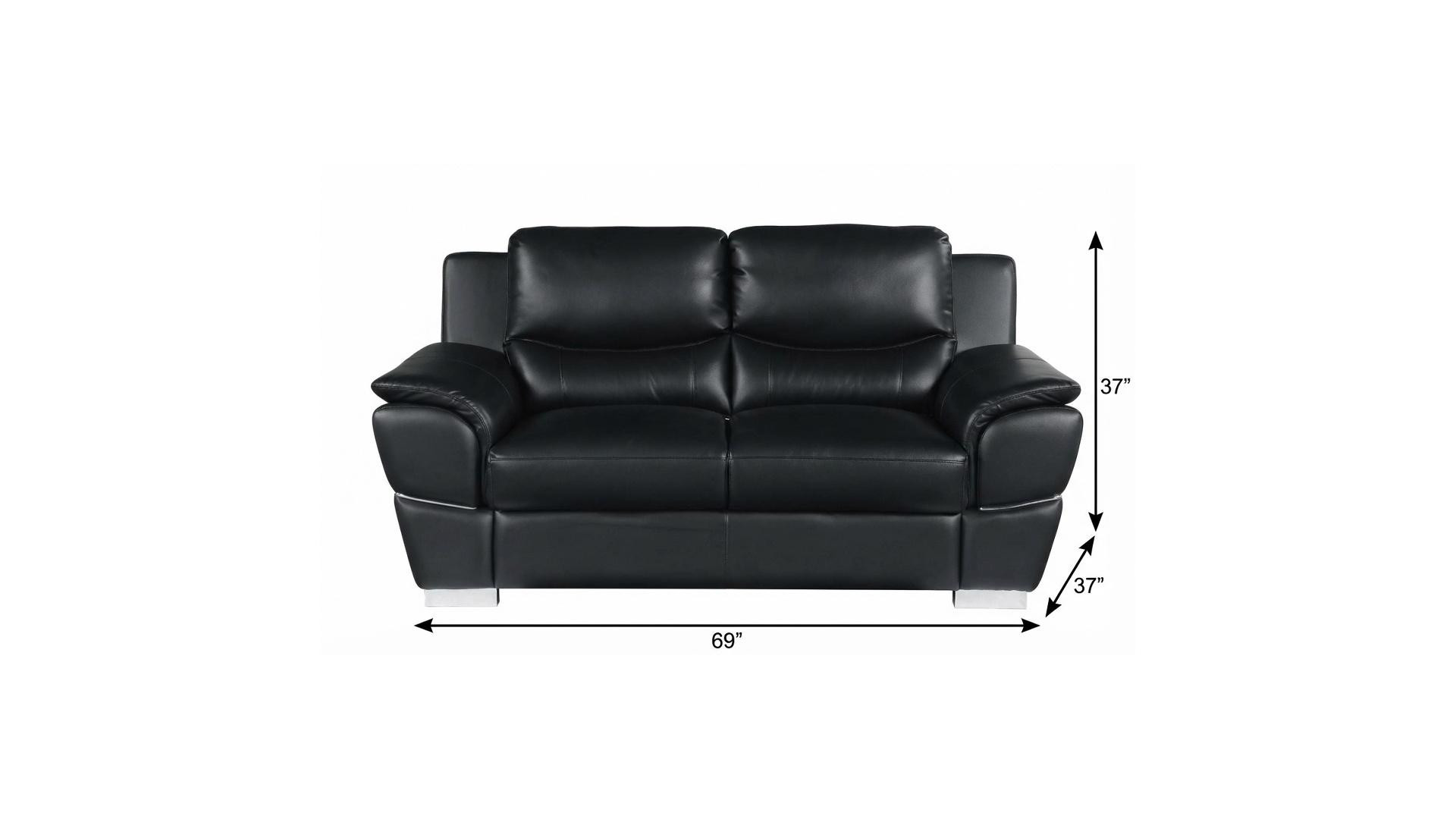 This 69-inch black and silver faux leather love seat is made from sturdy and resilient leather match that will look and feel like leather. Pillow top arms offer a comfy place to rest and give this piece some interest and shape. A great showpiece for your room, this sofa is a must have. 37-inch H x 69-inch W x 37-inch D