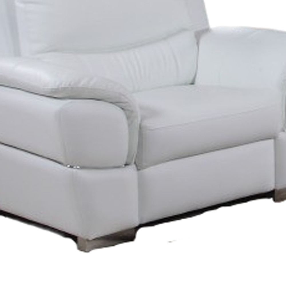 Step into a world of unparalleled seating comfort that is sure to dazzle even the toughest critic with our remarkable three piece indoor white genuine leather six person seating set. Upholstered in supple and luxurious genuine leather, this set has a rich and warm appeal. Coil spring seat construction provides excellent comfort by offering a responsive and supportive seating experience, gently contouring to the body's natural curves. The inclusion of a loveseat into your mix allows a fashionable seating option in a compact design. Chock full of value, this set has it all. 37-inch H x 85-inch W x 37-inch D