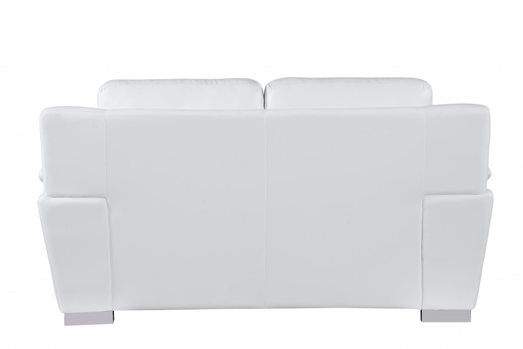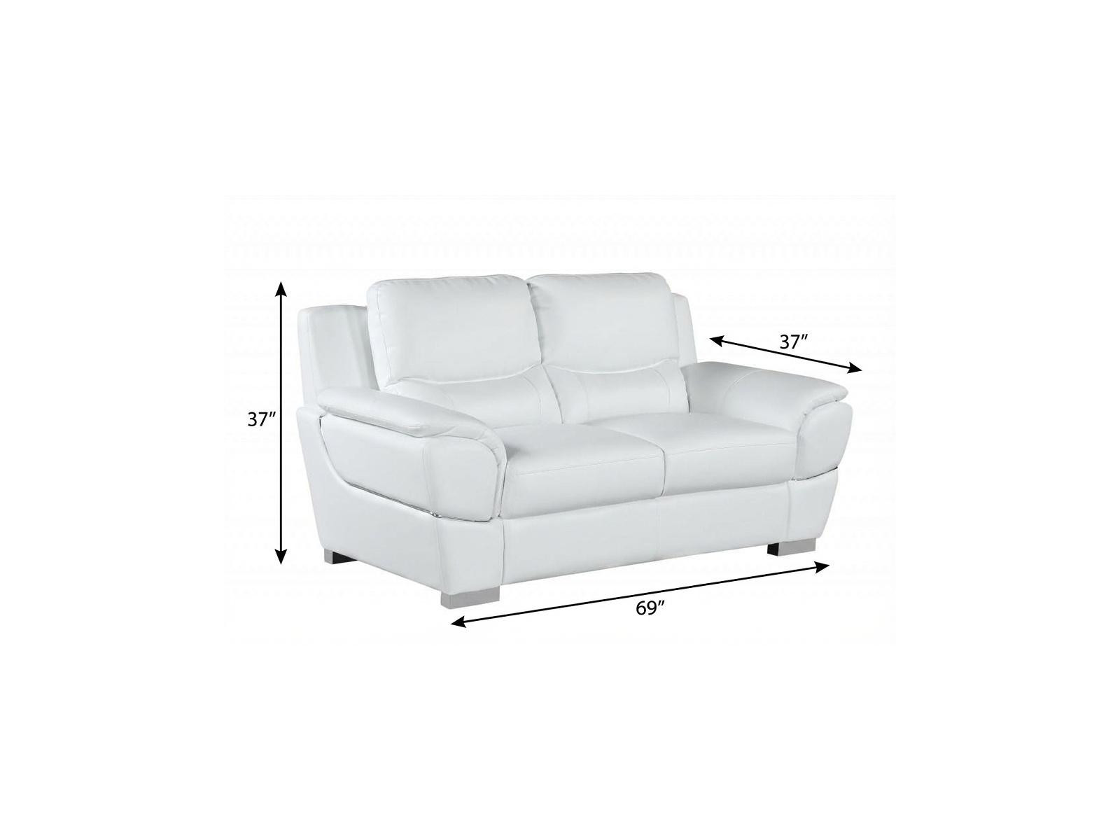 This 69-inch white and silver faux leather love seat is made from sturdy and resilient leather match that will look and feel like leather. Pillow top arms offer a comfy place to rest and give this piece some interest and shape. A great showpiece for your room, this sofa is a must have. 37-inch H x 69-inch W x 37-inch D