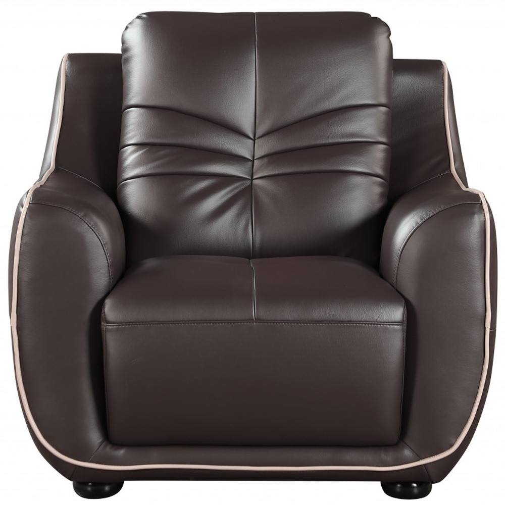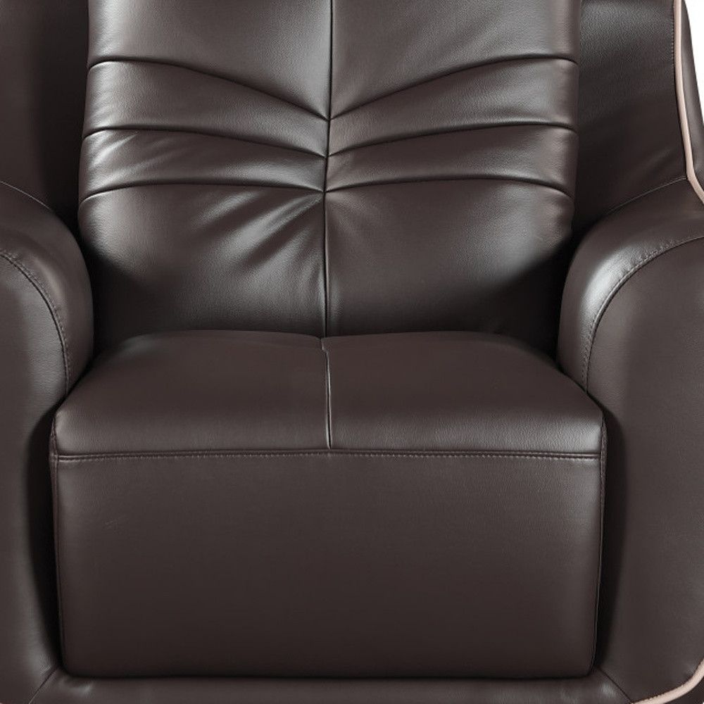 This 49-inch brown tufted leather match club chair will add a beautiful decorative accent to your decor. This stunning piece features flared arms crafted from leather, providing both comfort and style. The inner frame crafted from a mix of solid and manufactured wood ensures a sturdy foundation, while the coil spring seat construction enhances relaxation. With it's modern design, rich brown tufted leather with a curvy silhouette and piped edges, this chair complements a variety of interior styles. 36.00-inch h x 49.00-inch w x 37.00-inch d.