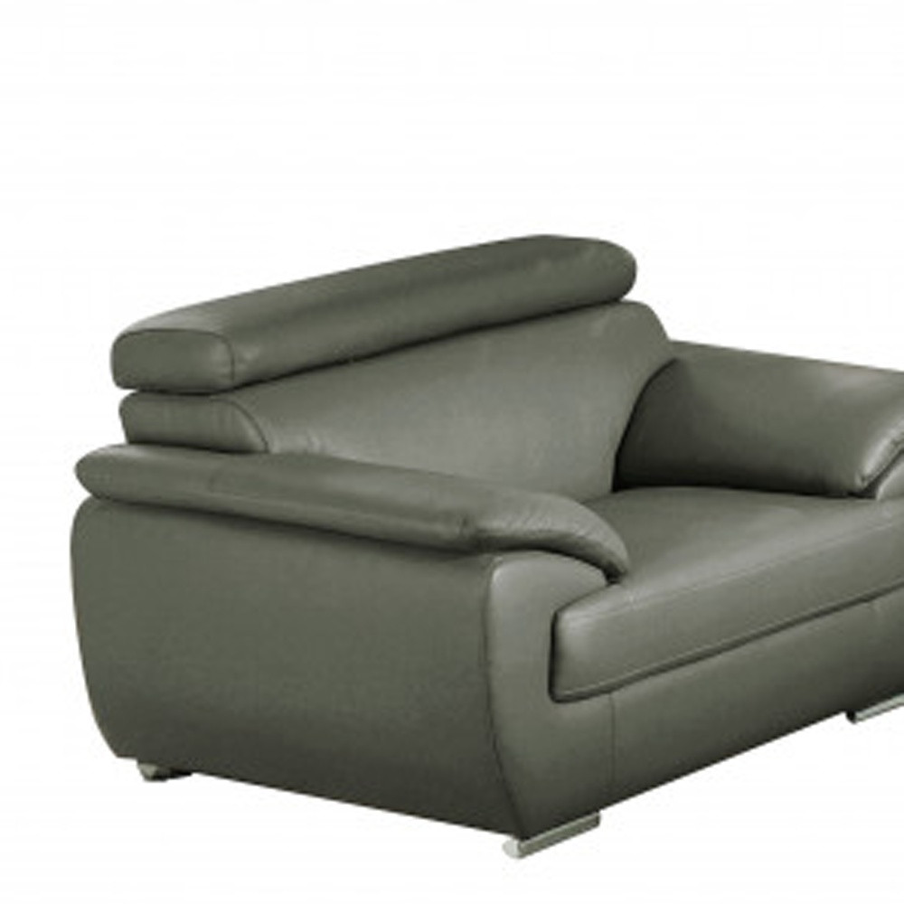 When it comes to indoor seating, this three piece indoor gray genuine leather six person seating set has everything you need to get set and ready to relax. Upholstered in supple and luxurious genuine leather, this set has a rich and warm appeal. The presence of coil spring seat construction helps distribute weight evenly, reducing pressure points and enhancing overall comfort by minimizing the strain on specific areas of the body. The inclusion of a loveseat into your mix allows a fashionable seating option in a compact design. Chock full of value, this set has it all. 32-inch H x 210-inch W x 37-inch D