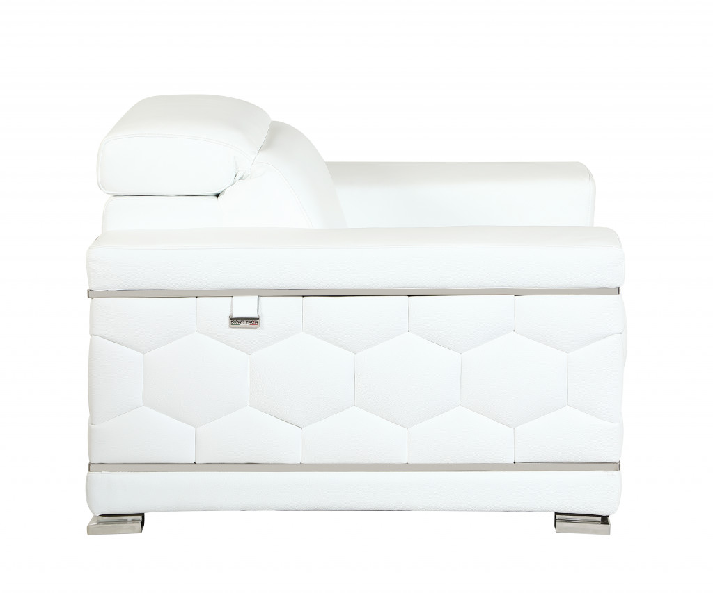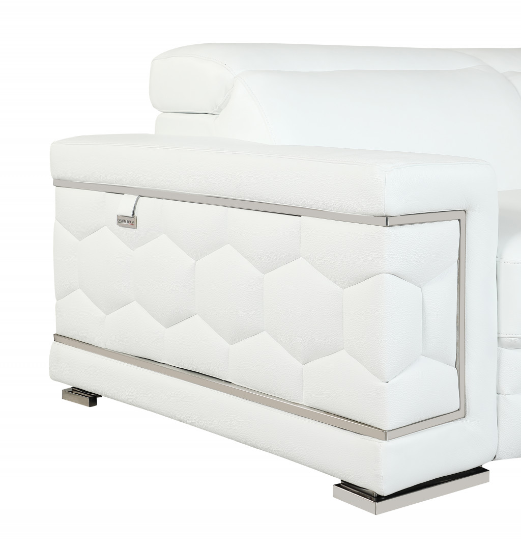 An interior designer's dream, this buttery soft high grade leather 71-inch white italian leather sofa with silver legs will bring just the right touch to your space. The premium leather used makes your lounging luxuriously comfortable and adds an elegant appeal to your space. Solid colors give you lots of decorative options and are easy to work into your decor scheme. Sinuous springs construction gives this piece strong support and makes it comfortable to sit even for long periods of time. Square arms offer a comfy place to rest. Silver stainless steel legs effortlessly elevate the room and add a touch of contemporary design. A great showpiece for your room, this sofa is a must have. 29-inch H x 71-inch W x 41-inch D