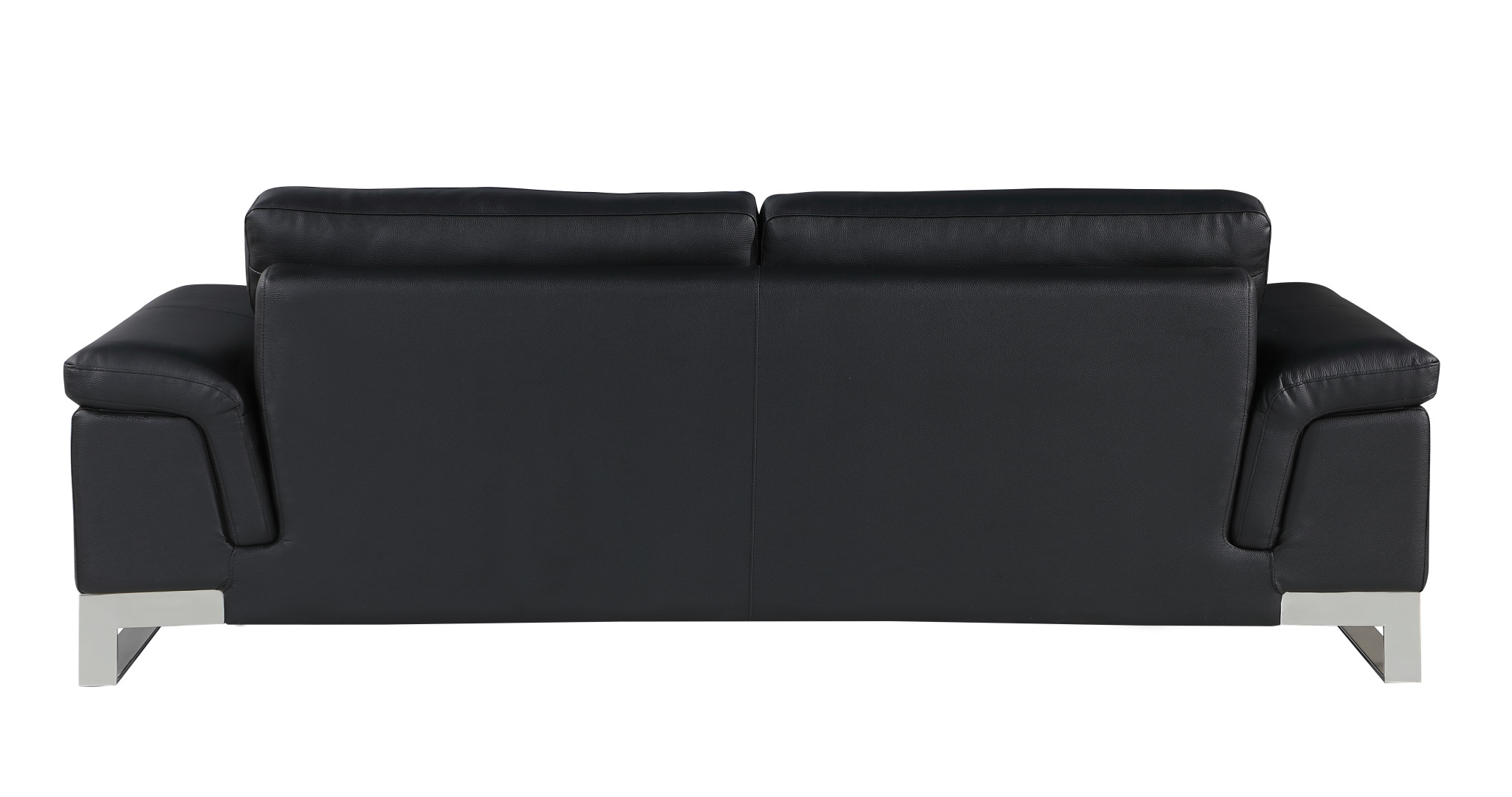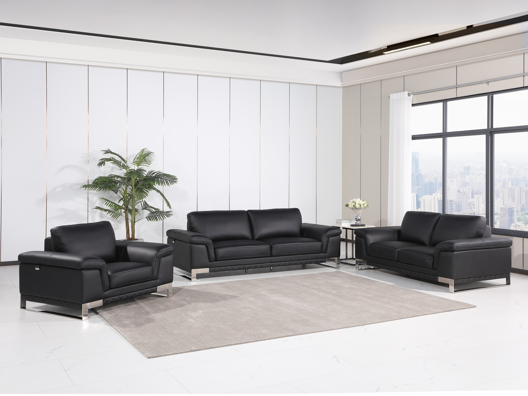 Step into a world of unparalleled seating comfort that is sure to dazzle even the toughest critic with our remarkable three piece indoor black italian leather six person seating set. Upholstered in supple and luxurious genuine leather, this set has a rich and warm appeal. The presence of coil spring seat construction helps distribute weight evenly, reducing pressure points and enhancing overall comfort by minimizing the strain on specific areas of the body. The inclusion of a loveseat into your mix allows a fashionable seating option in a compact design. Ready to re-decorate. This set is an obvious choice to fill your space with style and class. 32-inch H x 229-inch W x 39-inch D