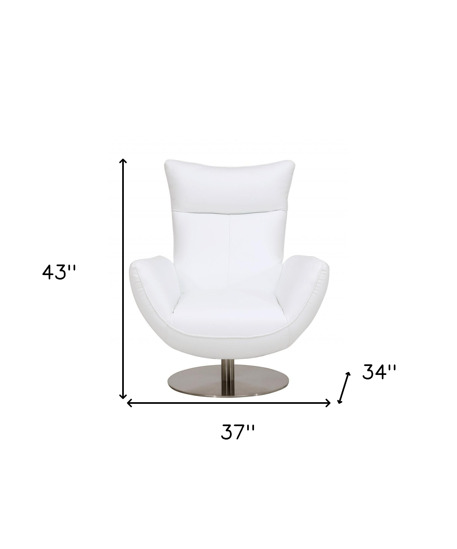 This 37-inch white and silver genuine leather lounge chair will add a beautiful decorative accent to your decor. This sturdy genuine leather upholstered lounge chair comes in a chic solid white color to give your space just the right look. The high quality solid and manufactured wood inner frame flaunts convenient armrests and a tight back that are complimented by soft and comfortable cushioning. 43-inch h x 37-inch w x 34-inch d.