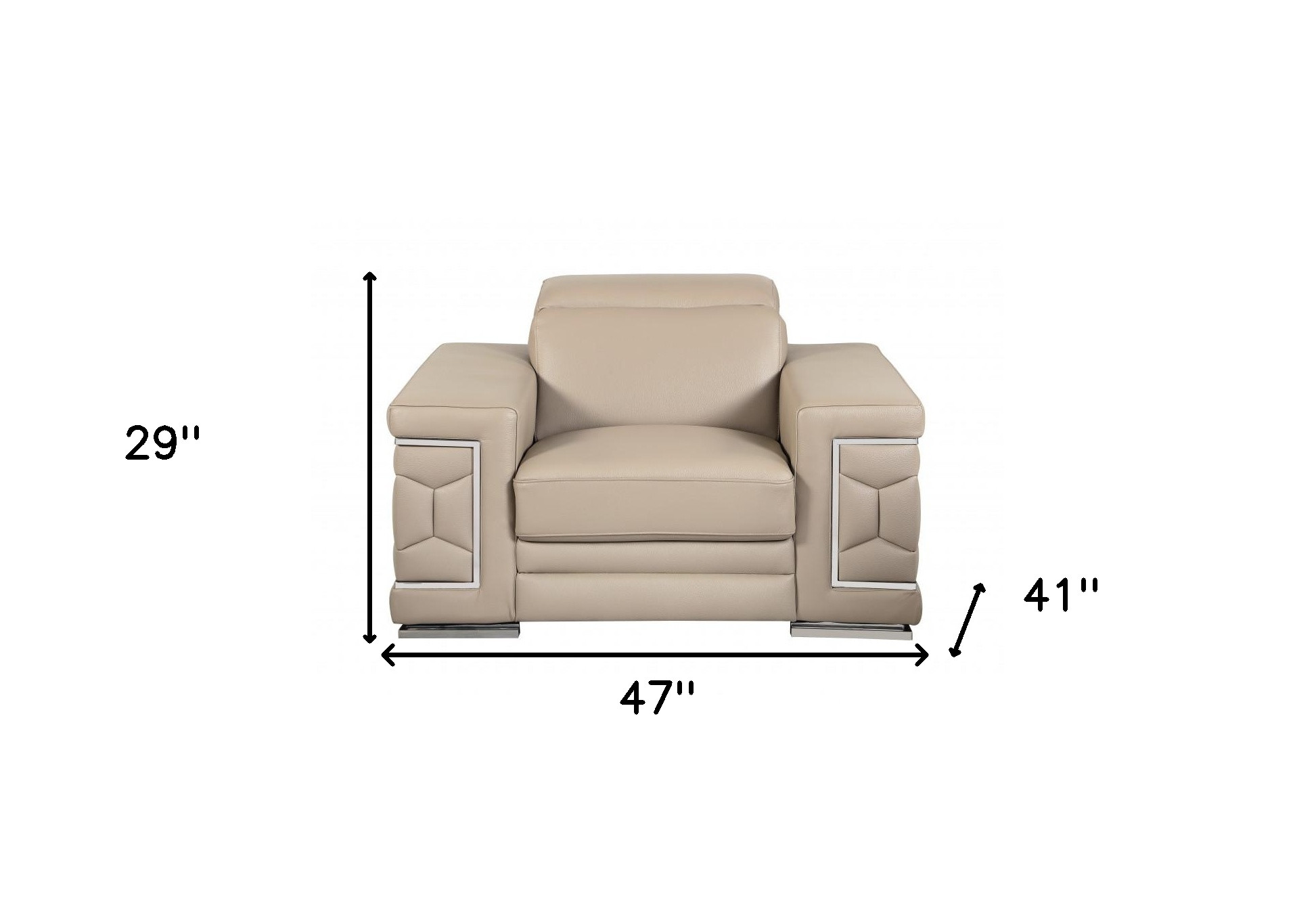 A mix of form and function, this 47-inch beige and silver faux leather club chair will bring a good looking and usable accent to your space. Built to last this club chair is finished in solid beige faux leather to give your room a great update. The sturdy inner frame is built with high quality solid and manufactured wood, includes armrests, and features a tight back that is accented with soft and comfortable cushioning. 29-inch h x 47-inch w x 41-inch d.
