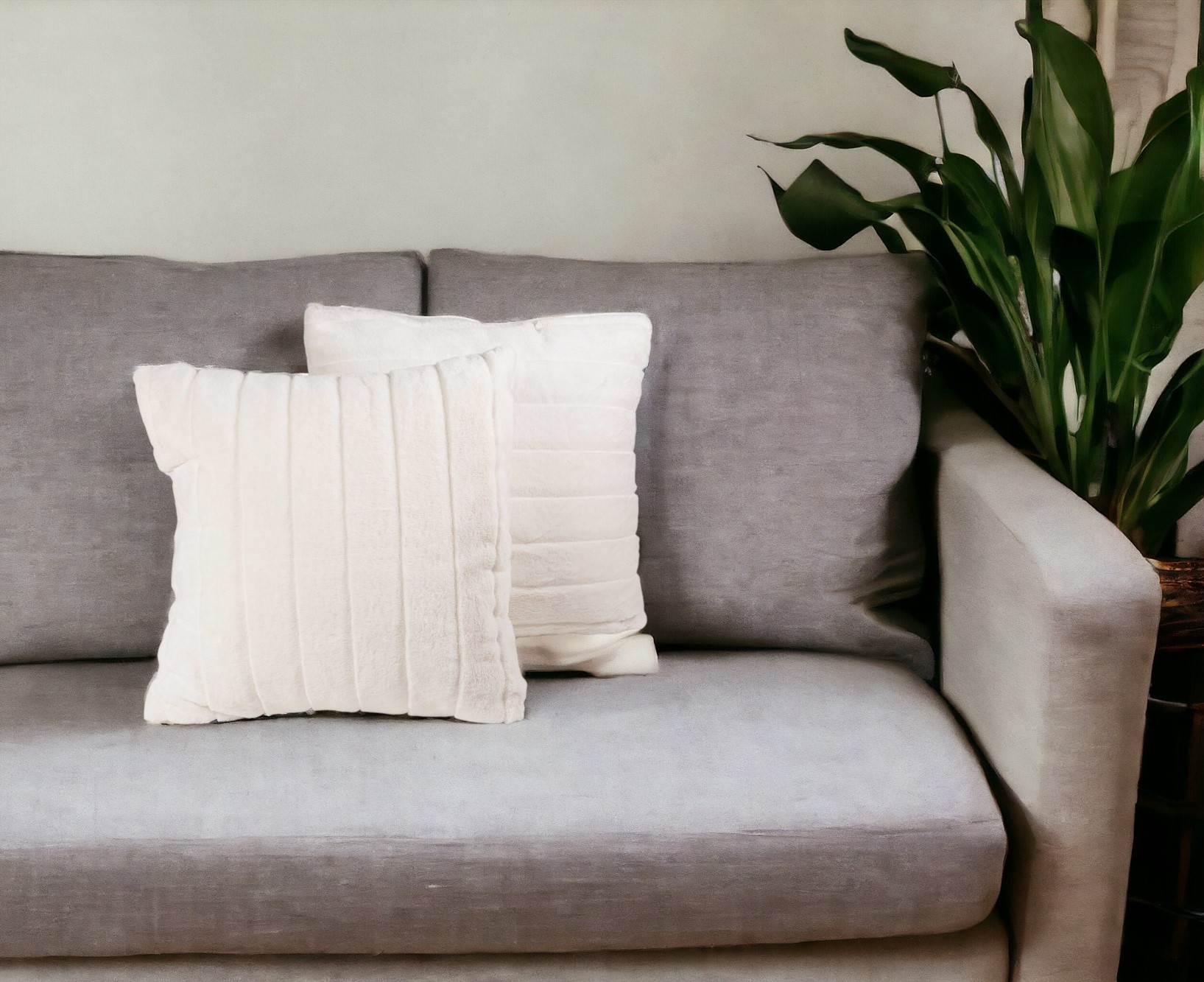 Bring a bit of fashion and zip to your space with this eye-catching and comfy set of two off-white faux fur throw pillow. High-quality off-white faux fur has been used to make this decorative pillow set look and feel like the real thing. Super soft and built to hold its shape, this cotton pillow is a great option. For anyone that loves to decorate or accent their space with color and texture. Decorative pillows are a great way to change up the look and feel of your space easily and quickly. 18-inch H x 18-inch W x 5-inch D