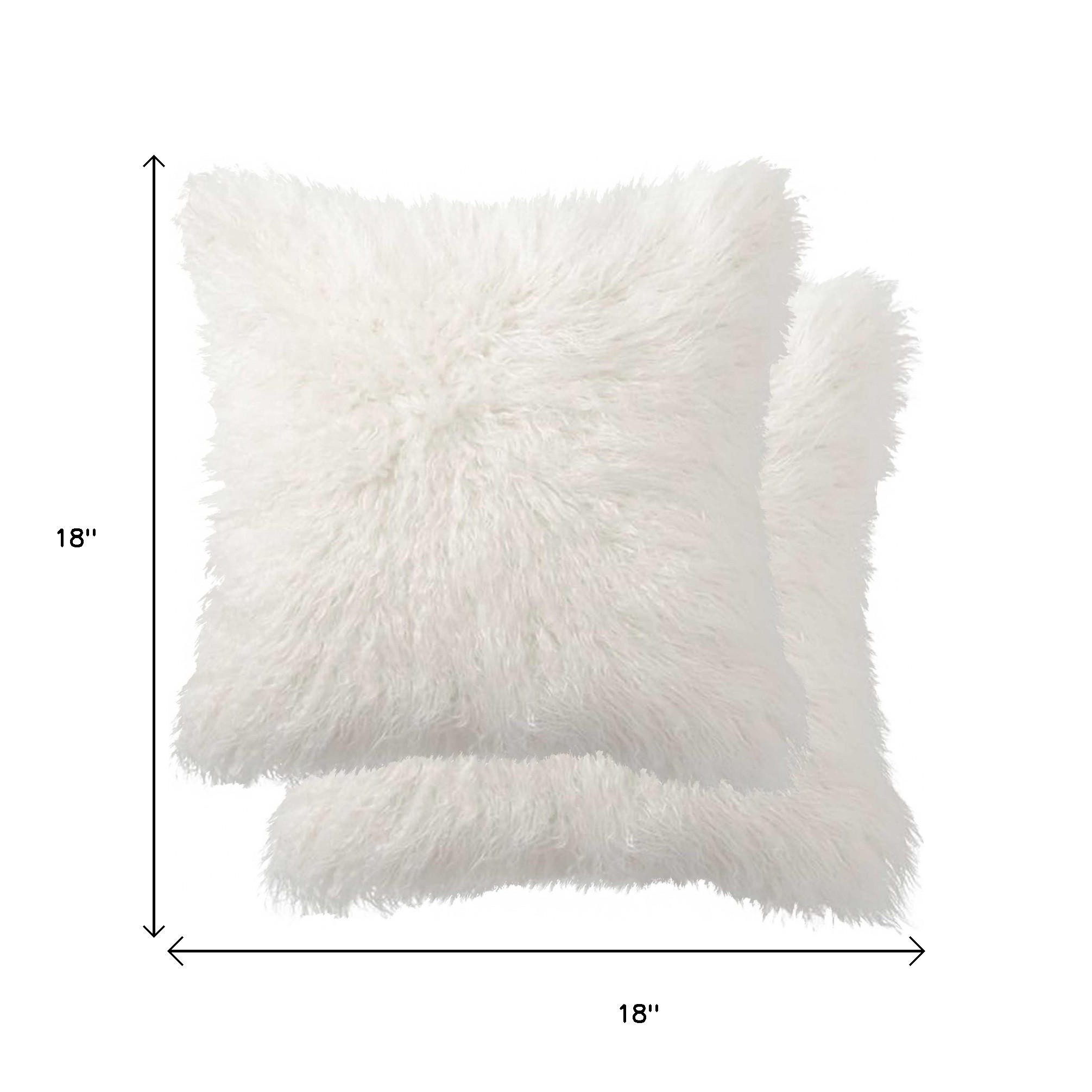 Indulge in the sumptuous feel and decadent softness of our luxury faux fur collection. The perfect cozy accent, our faux pillows are 100% animal-free, yet beautifully re-create the natural weight, depth of color and lush pile of genuine sheepskin. The rich texture and enduring design will infuse a gorgeous sophistication and timeless style to any room. FEATURES: Made from Acrylic Plush - 100% Animal-Free Fibers / Double-sided / Knife Edge Closure / Machine Tufted / Durable construction and enduring design / Polyfil interior / Lush, super-soft pile / Extra large square shape is perfect for layering with other pillows / Set of 2 pillows to accent multiple seats / Luxury and style with zero animal cruelty / Machine washable for easy cleaning: cold water, line dry, no heat, no bleach, no iron