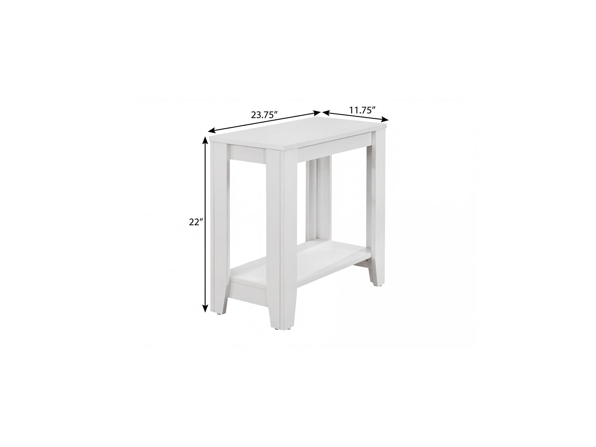 Optimize your space and add some charm to your room with the 22-inch white wood end table with shelf. This table is made from manufactured wood in a white color throughout the base and top. Includes a single shelf for handy storage or display space. A great accent on either side of the sofa or bed, this adorable end or side table is just what you need. You can match it with other pieces to get the ideal look for your place. 22.00-inch h x 23.75-inch w x 11.75-inch d.
