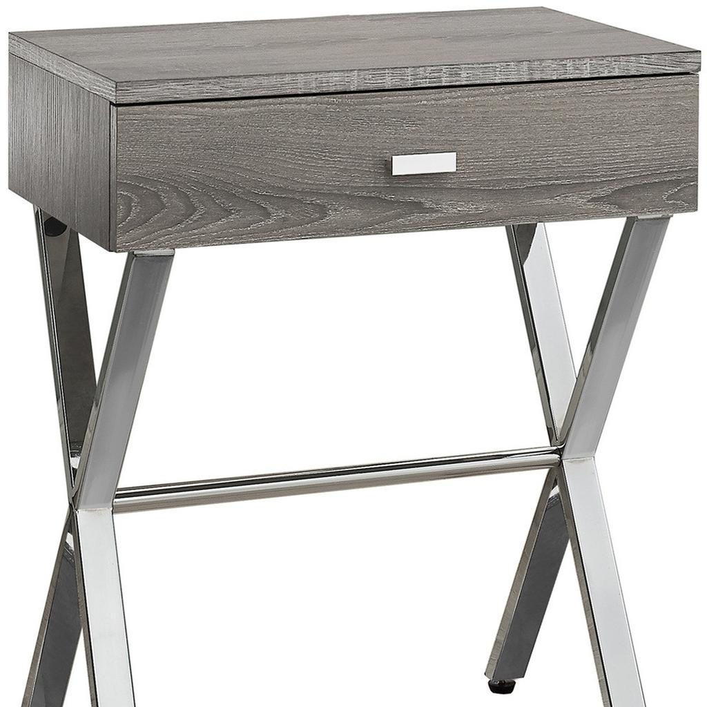 wood metal end table drawer, metal end table drawer, wood metal end table, taupe wood metal end table, 22" silver deep taupe wood |