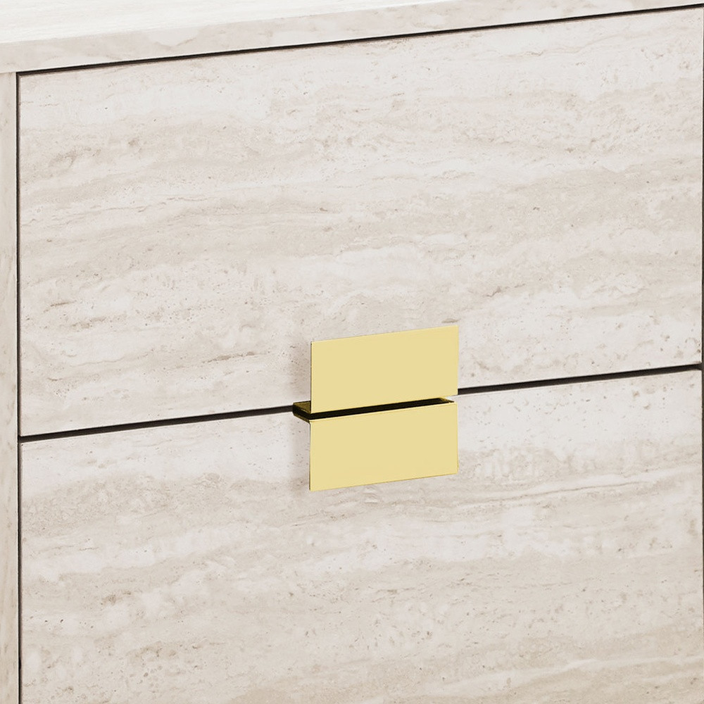 Show off your exquisite taste with this 24-inch gold and beige end table with two drawers. Quality construction from the gold metal base combines with beige manufactured wood of the top to give this table a fresh and updated look. Includes 2 easy open drawers for storage of the small essentials. Side tables are a great way to flank your sofa, use as an accent next to your favorite chair, or can even be used bedside. You can also use it as an entryway table to hold your keys. 23.5-inch H x 18.25-inch W x 12.75-inch D