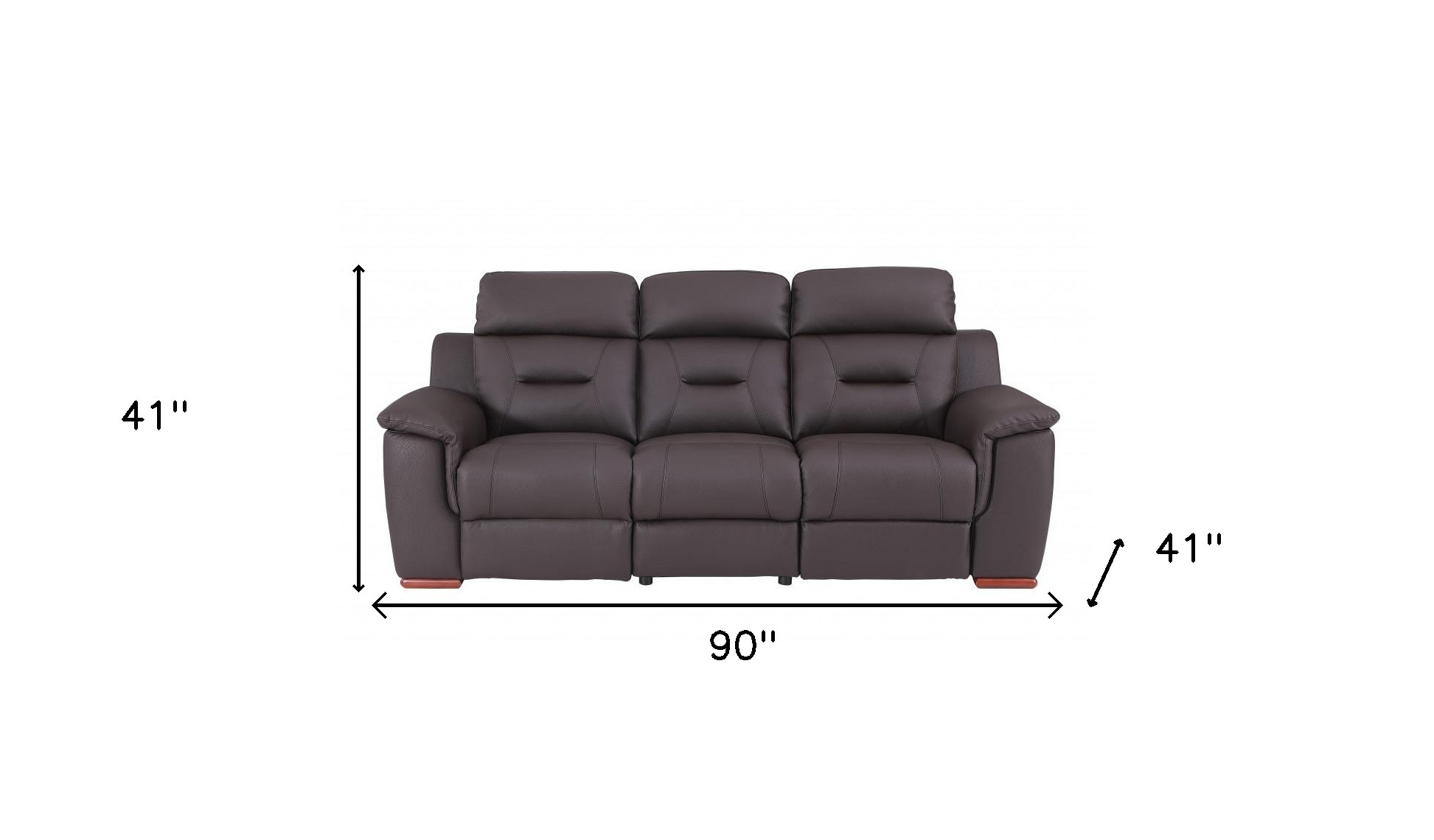 This 90-inch brown faux leather sofa is made from sturdy and resilient faux leather that will look and feel like leather. Solid colors give you lots of decorative options and are easy to work into your decor scheme. Pillow top arms offer a comfy place to rest. Brown stainless steel legs effortlessly elevate the room and add a touch of contemporary design. A great showpiece for your room, this sofa is a must have. 41-inch H x 90-inch W x 41-inch D