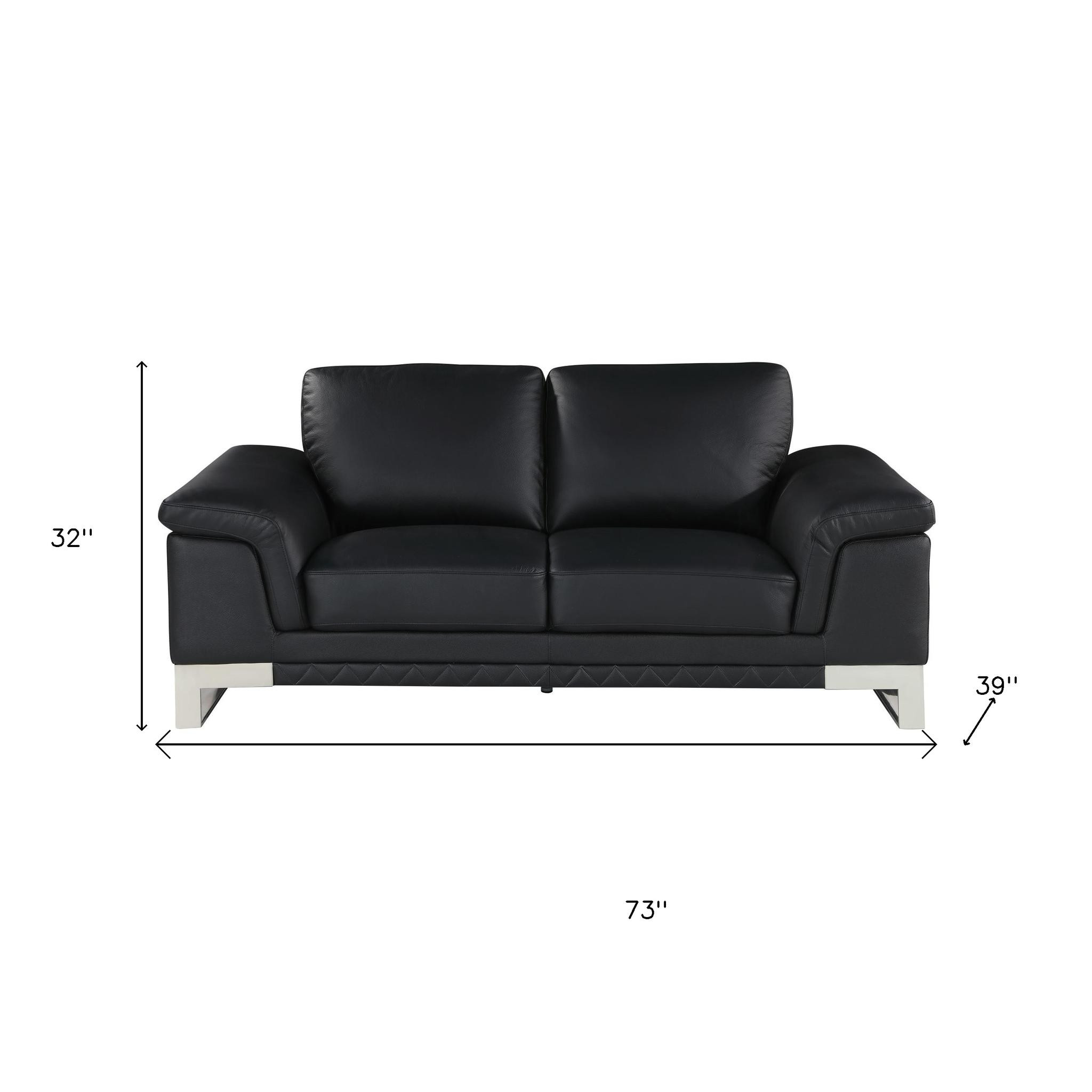 When it comes to indoor seating, this two piece indoor black italian leather five person seating set has everything you need to get set and ready to relax. Upholstered in supple and luxurious genuine leather, this set has a rich and warm appeal. The presence of coil spring seat construction helps distribute weight evenly, reducing pressure points and enhancing overall comfort by minimizing the strain on specific areas of the body. The inclusion of a loveseat into your mix allows a fashionable seating option in a compact design. Gather with family and loved ones with this seating set that will bring you all together. 32-inch H x 73-inch W x 39-inch D