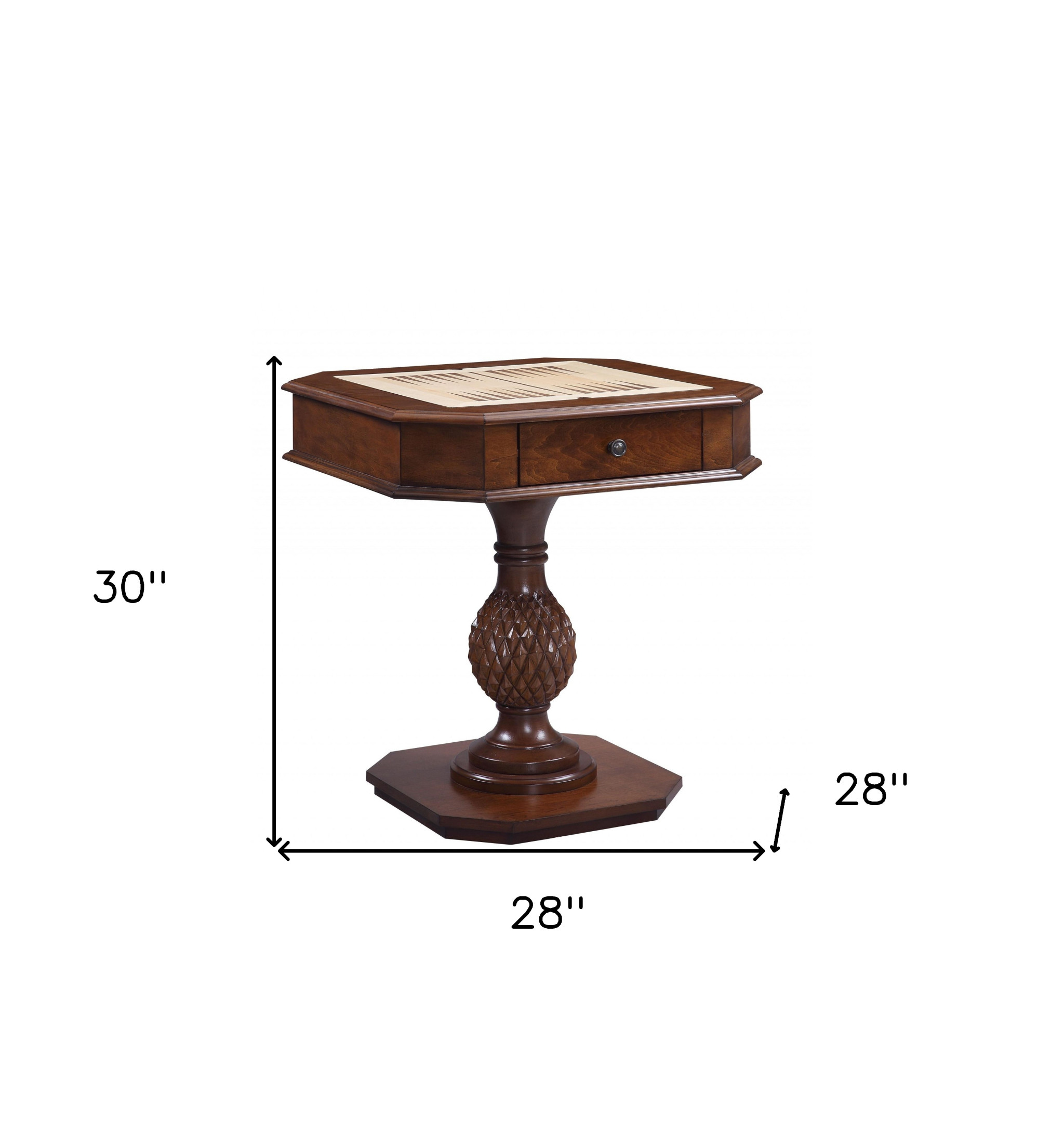 Don't settle for a boring entryway, upgrade your home with our 28-inch brown octagon console table with drawer today. The octagon shape of this brings a modern update on geometry to your space. Ideal for living rooms, bedrooms, home offices, and lounge areas, this console table is not only good looking but multi-functional and practical addition to your space. 30-inch h x 28-inch w x 28-inch d.