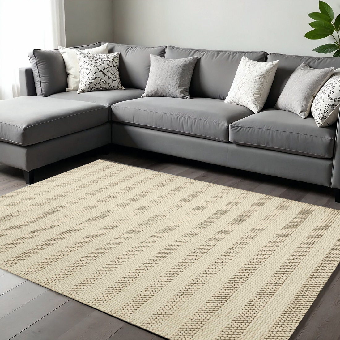 | Keywords: | striped hand woven area rug, hand woven area rug, woven area rug, 9' X 13' ivory white wool striped, wool striped hand woven area |