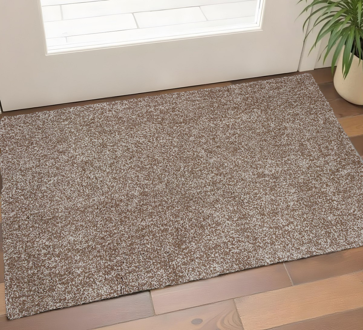 Set an inviting tone in your space with this 2-foot x 4-foot beige and brown abstract shag hand woven area rug. Ideal for spaces with kids and pets, this rug is stain resistant to help repel dirt and spilled liquids. Crafted by skilled artisans, this hand woven rug is genuine and unique. No two will be exactly alike. Built to last, this rug crafted from polyester fibers is known for its durability and long lasting appeal. Rugs are a great way to showcase your style, hide imperfections, warm your home and reduce noise. The retro shag construction of this luxurious rug will provide a soft and comfortable barrier to color tile and hardwood floors. This smaller sized, contemporary styled rug is just what you need for your walkway, bedside, in front of door, cabinet, refrigerator, or chair. 27.00-inch h x 45.00-inch w x 0.50-inch d.