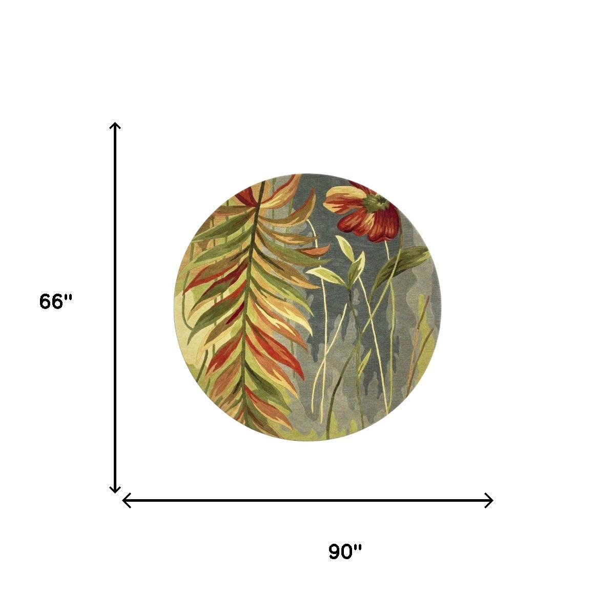 Add great coloration and comfortable texture to your space with this 5-foot blue and green wool tropical botanical hand tufted round rug. Crafted by skilled artisans, this hand tufted rug is genuine and unique. No two will be exactly alike. Rugs are a great way to showcase your style, hide imperfections, warm your home and reduce noise. This larger sized, contemporary styled rug is ready to create a focal point or statement piece in your room. 66.00-inch h x 90.00-inch w x 0.50-inch d.