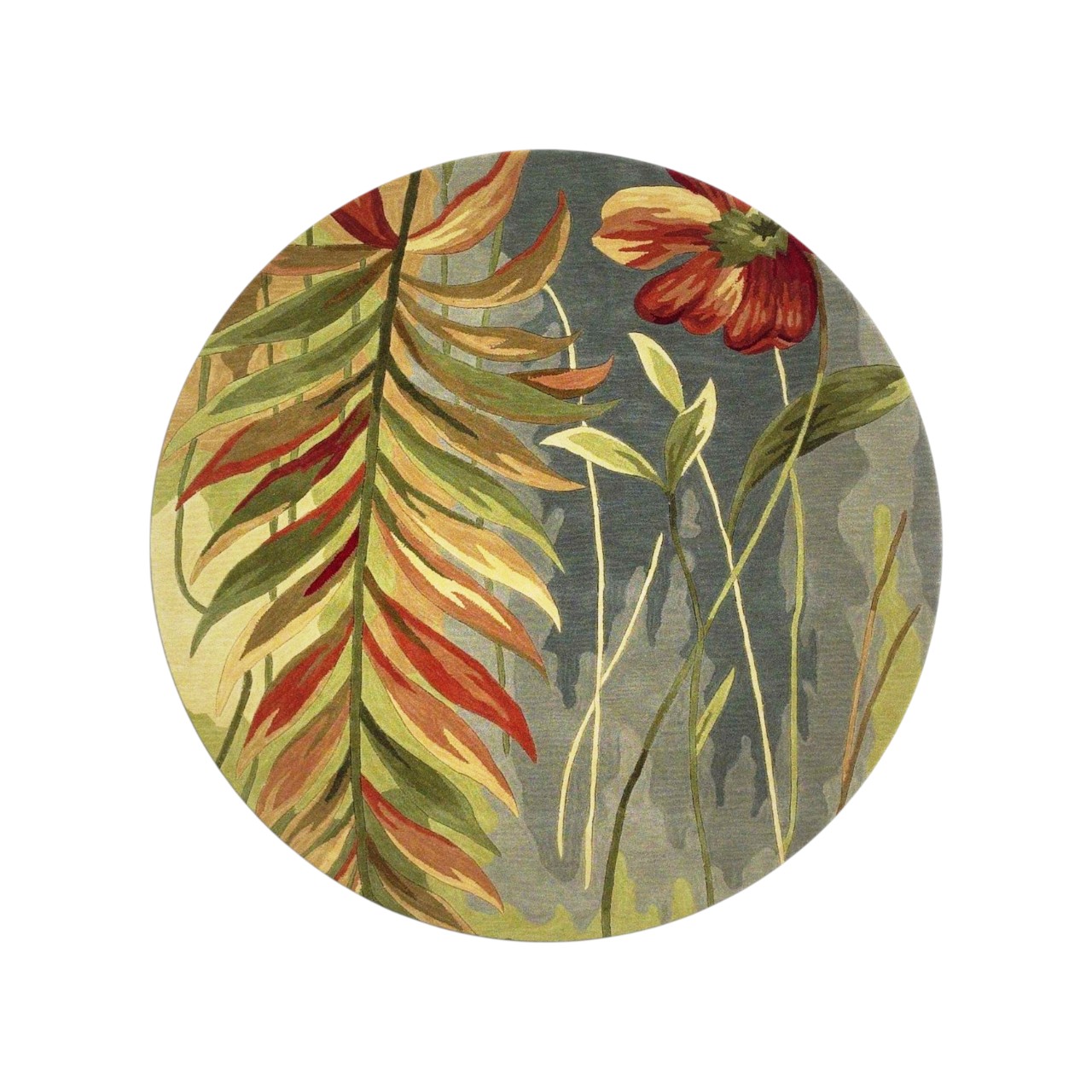 botanical hand tufted round rug, hand tufted round rug, wool tropical botanical hand tufted, green wool tropical botanical hand, blue green wool tropical botanical |