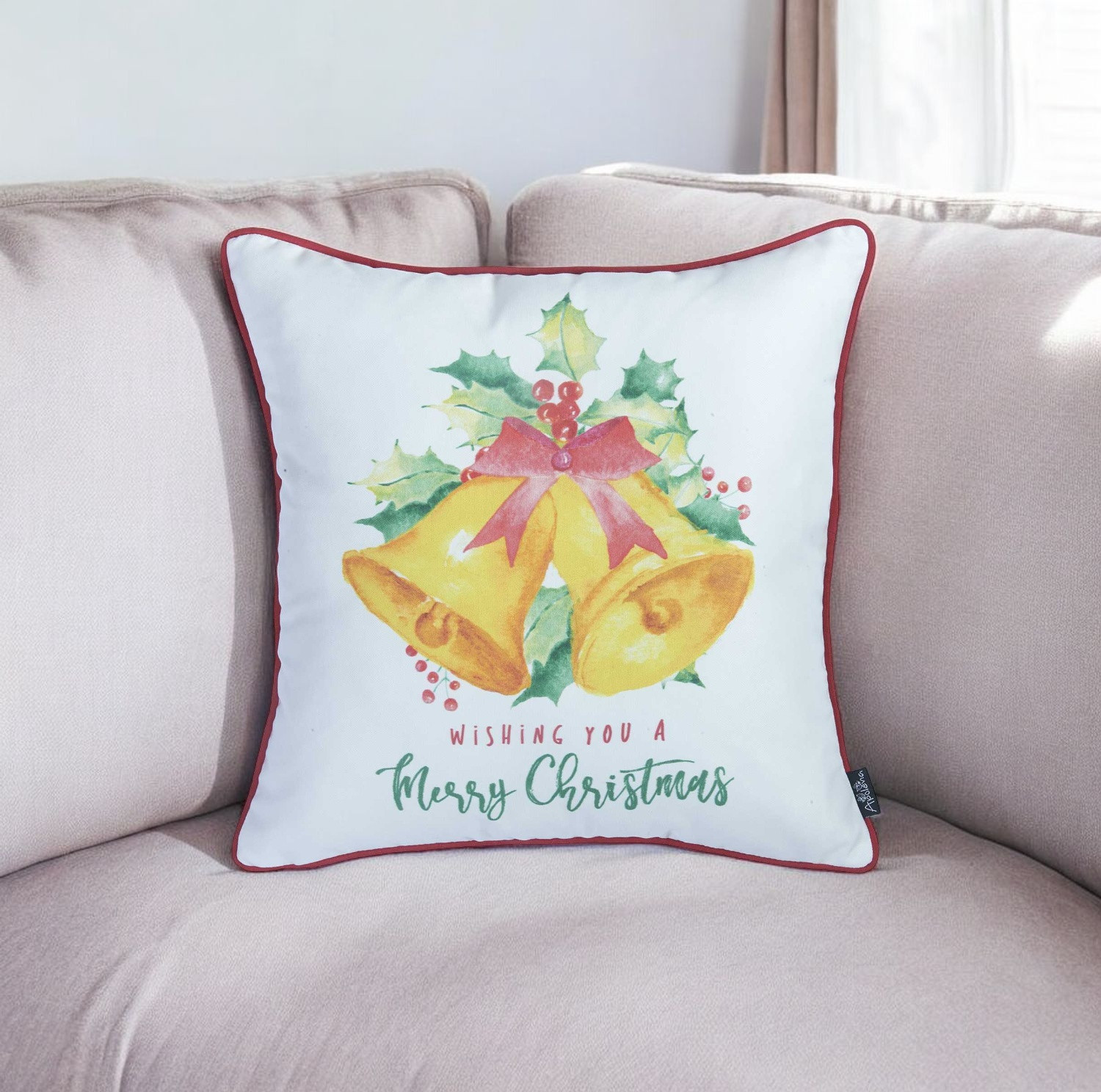 Easily update and refresh your home with Christmas Bells Printed Decorative Throw Pillow Cover. Instant upgrade of any space is possible with throw pillow covers made with luxurious brushed fabric. Distinct and colorful patterns will add hue and style to any room. Hidden zipper closure provides a clean and seamless look all the way around. 100% Polyester Brushed with very soft and luxurious hand feel. Our fabrics are dyed with OEKO-TEX? Standard 100 certified products without any harmful substances. 18" X 18" (45cm X 45cm). Hidden zipper closure. High quality digital printing in the front, back side is solid natural color. Red piping all around. Inserts are not included, can be purchased separately. Machine Wash Cold Separately, Gently Cycle Only, No Bleach, Tumble Dry Low, Do Not Iron