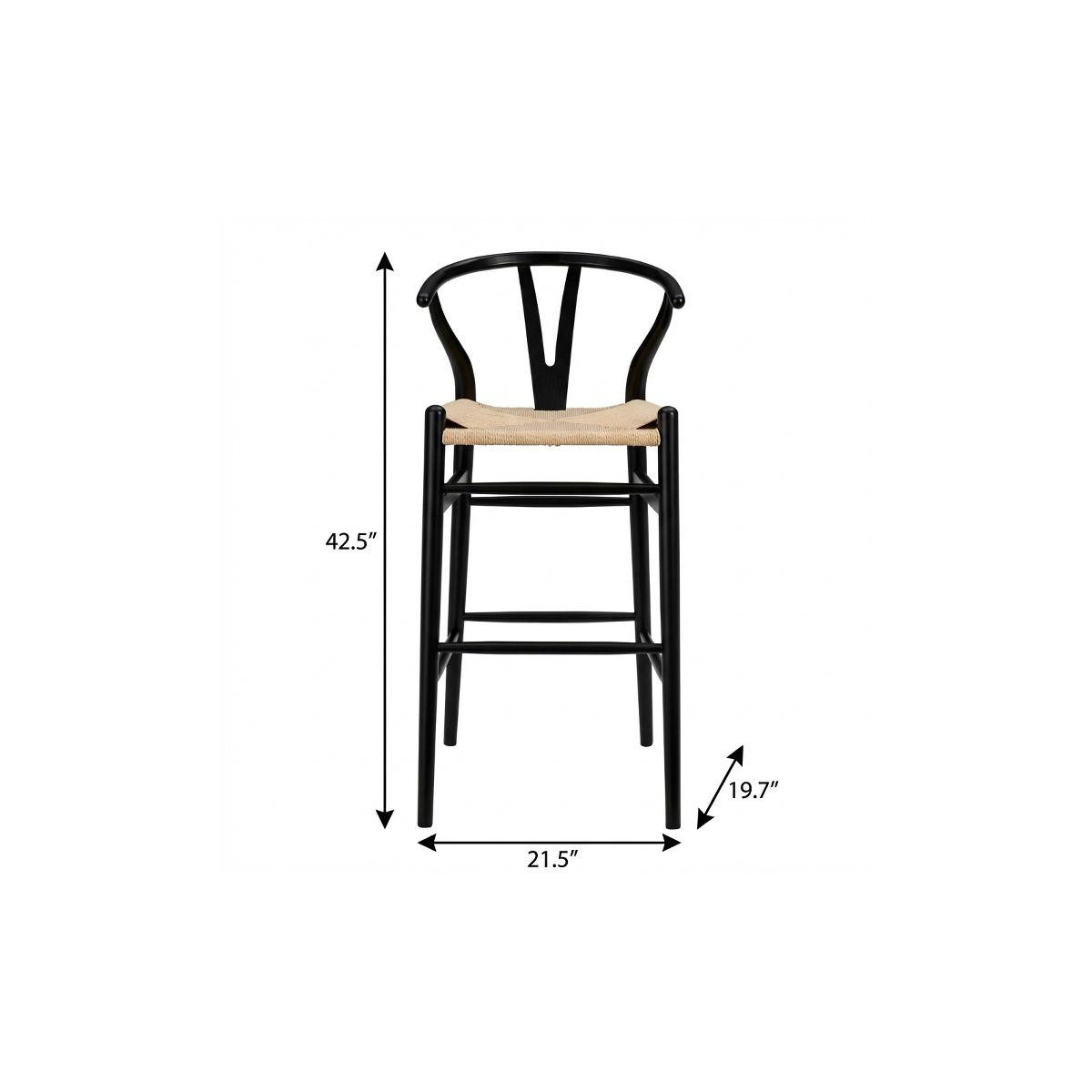 With this 30-inch natural and black solid wood low back counter height bar chair with footrest you can add design and extra seating to your space. A black solid wood frame is finished off with a natural rush seat that is the epitome of quality construction and design. A low back mixed with a rectangle shaped seat design makes this chair both comfortable and fashionable. Designed with a footrest for comfort and convenience. 42.5-inch H x 21.5-inch W x 19.7-inch D