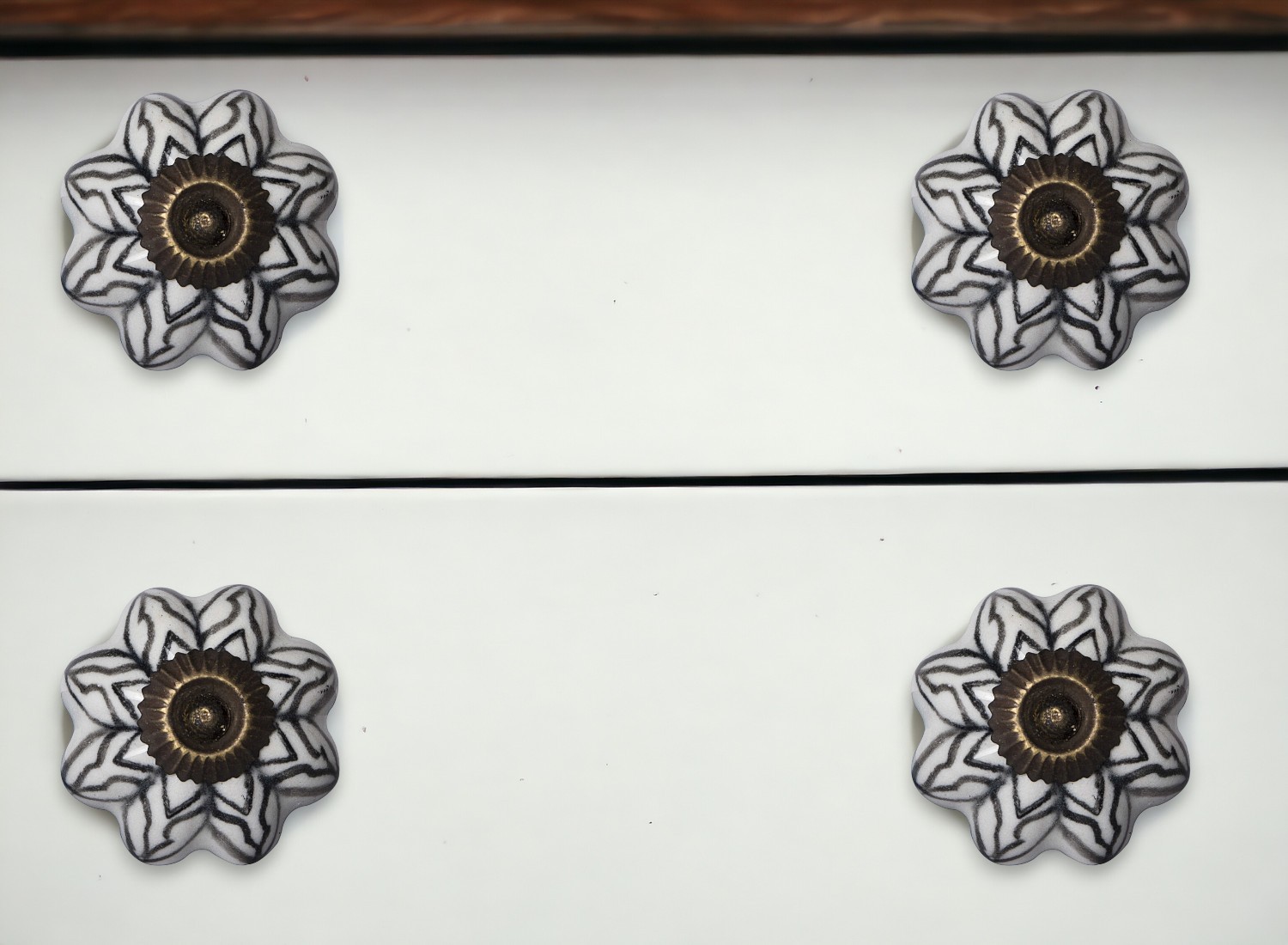 floral ceramic drawer pull knobs, ceramic drawer pull knobs, drawer pull knobs, white floral ceramic drawer pull, black white floral ceramic drawer |