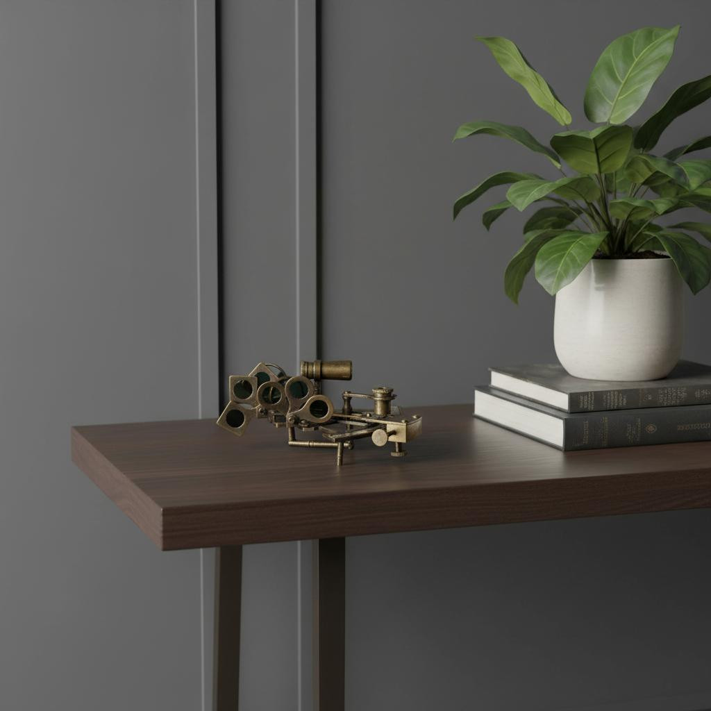 This is a fully functional nautical sextant. It is made of high quality brass. Each component is crafted with the finest craftsmanship. Available in antique brass finish and it comes in a beautiful rosewood gift box. This sextant is a great addition to any nautical collection. The item dimensions are: L: 4.5 inches, W: 4 inches, H: 2.5 inches.