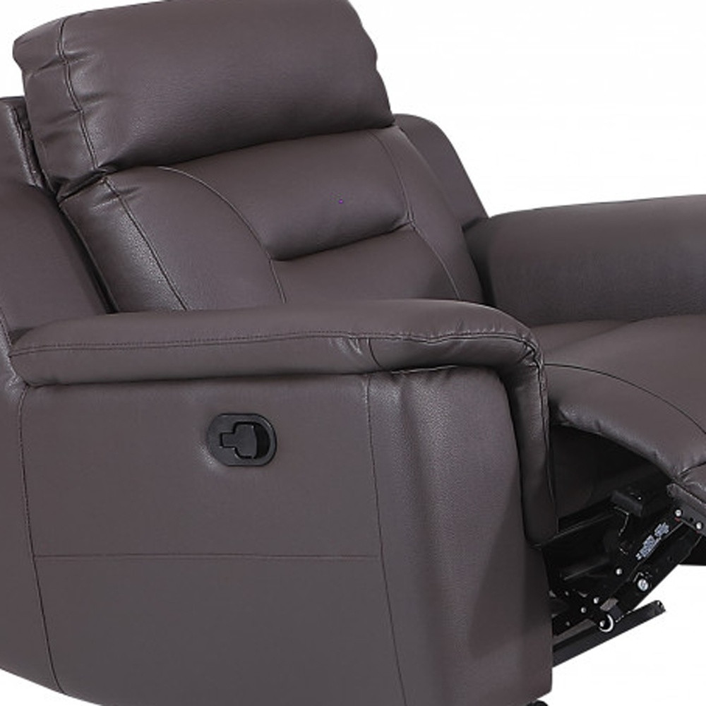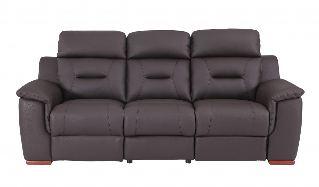 Step into a world of unparalleled seating comfort that is sure to dazzle even the toughest critic with our remarkable three piece indoor brown genuine leather five person seating set. The reclining sofa will transform your space into a cozy haven for leisurely activities, movie nights, or even quick power naps. Upholstered in supple and luxurious genuine leather, this set has a rich and warm appeal. Coil spring seat construction provides excellent comfort by offering a responsive and supportive seating experience, gently contouring to the body's natural curves. The inclusion of a loveseat into your mix allows a fashionable seating option in a compact design. Enhance your organization and style with cabinet storage, providing a sleek and functional solution for concealing and arranging your belongings. Ready to re-decorate. This set is an obvious choice to fill your space with style and class. 123-inch H x 200-inch W x 123-inch D