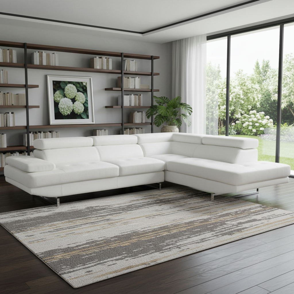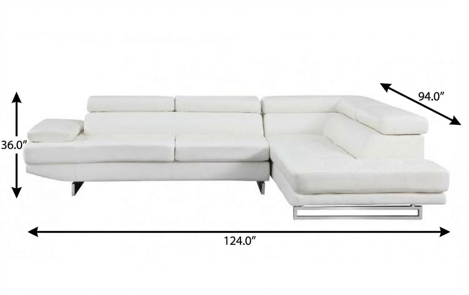 The white leather L shaped two piece corner sectional is spacious design meticulously crafted with extraordinary cushion comfort and ultimate durability so everyone in your home can have the best seat in the house. The high-end premium leather used makes your lounging luxuriously comfortable and adds an elegant appeal to your space. Solid colors give you lots of decorative options and are easy to work into your decor scheme. Silver metal legs effortlessly elevate the room and add a touch of contemporary design. Great for everyday lounging and for entertaining, sectionals are an ideal way to seat multiple people. 36-inch H x 124-inch W x 94-inch D