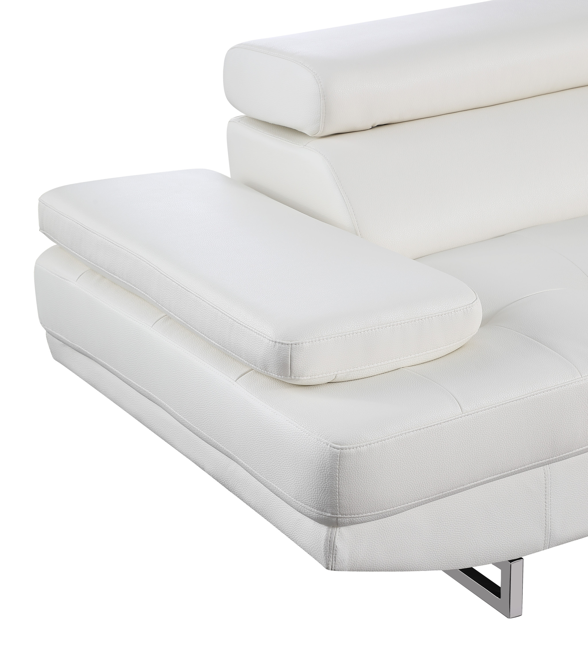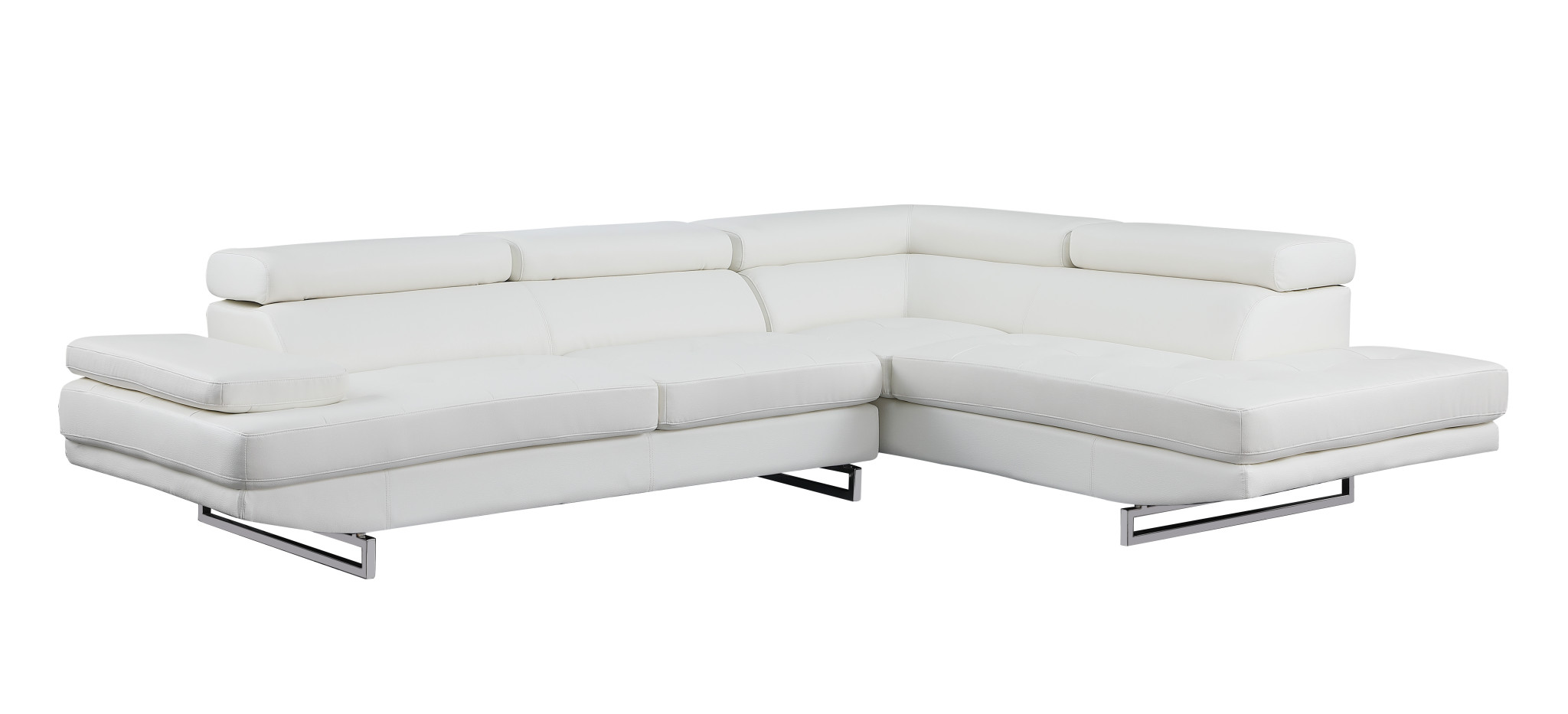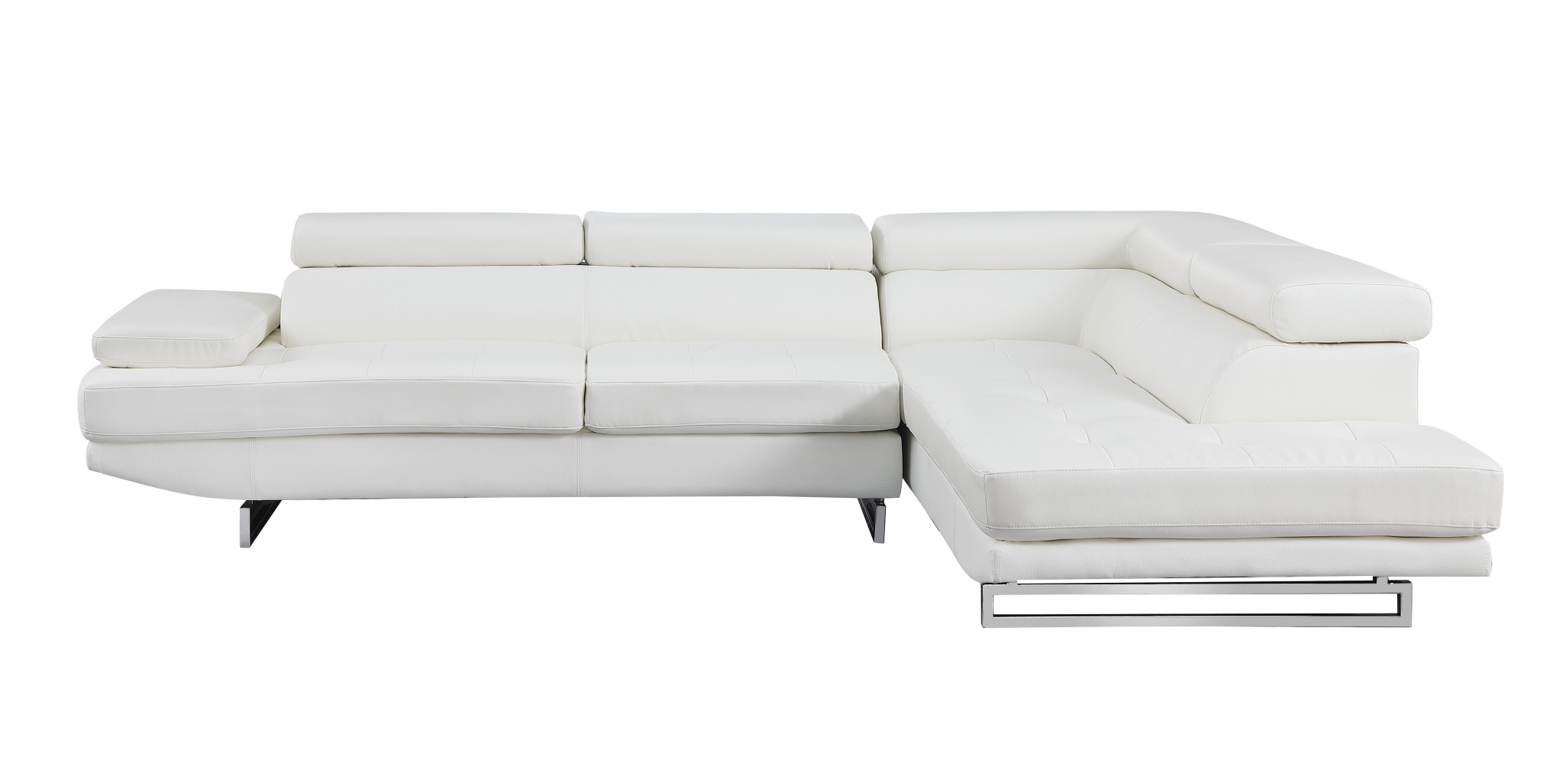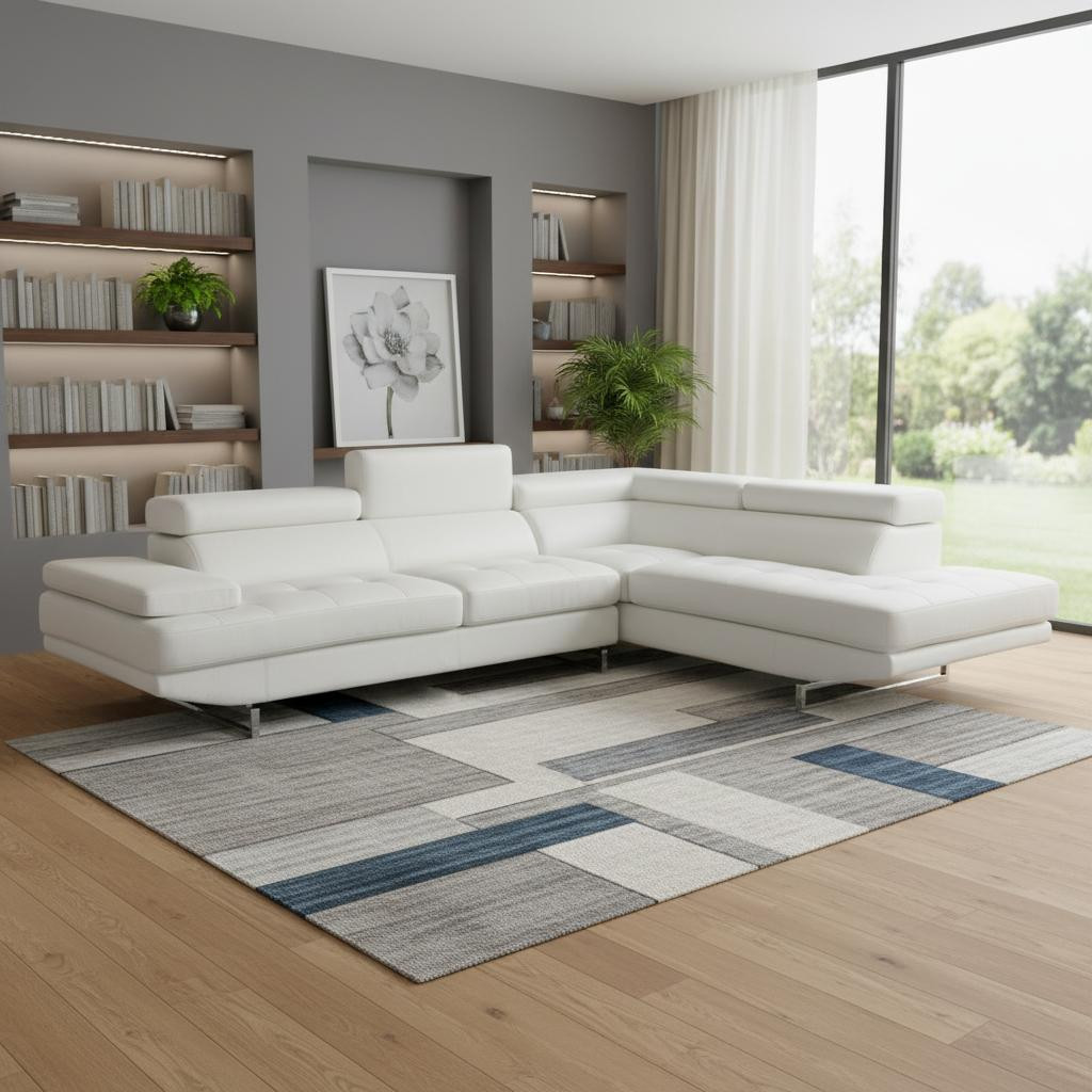 The gray leather l shaped two piece corner sectional is spacious design meticulously crafted with extraordinary cushion comfort and ultimate durability so everyone in your home can have the best seat in the house. The high-end premium leather used makes your lounging luxuriously comfortable and adds an elegant appeal to your space. Solid colors give you lots of decorative options and are easy to work into your decor scheme. Silver metal legs effortlessly elevate the room and add a touch of contemporary design. A great showpiece for your room, this sectional is a must have. 36-inch H x 124-inch W x 94-inch D