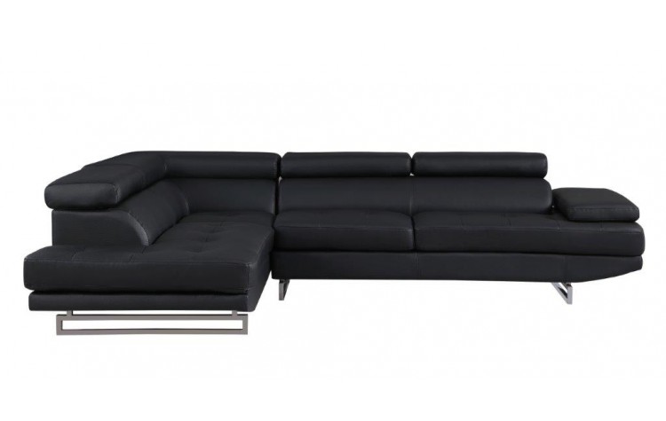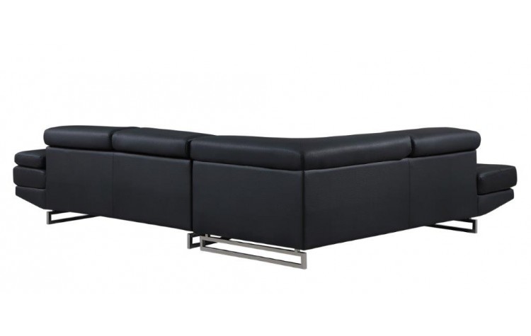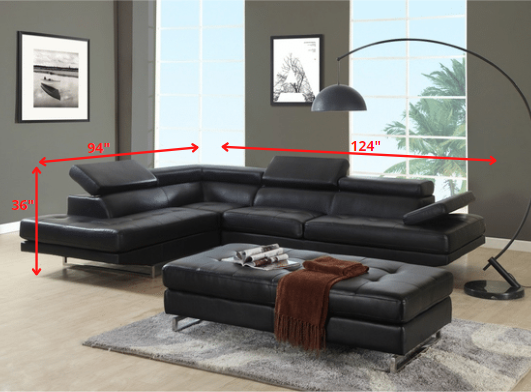 This black faux leather l shaped two piece corner sectional is made from sturdy and resilient faux leather that will look and feel like leather. Easy to care for this is a great option for families and spaces that get lots of use. Solid colors give you lots of decorative options and are easy to work into your decor scheme. Silver metal legs effortlessly elevate the room and add a touch of contemporary design. Great for everyday lounging and for entertaining, sectionals are an ideal way to seat multiple people. 36-inch H x 124-inch W x 94-inch D