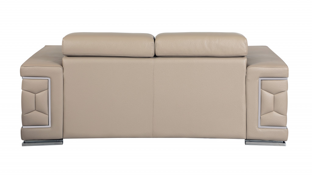 Prepare to amaze even the most discerning critics with our two piece indoor beige italian leather five person seating set - the epitome of indoor seating that will leave them speechless. Upholstered in supple and luxurious genuine leather, this set has a rich and warm appeal. Coil spring seat construction provides excellent comfort by offering a responsive and supportive seating experience, gently contouring to the body's natural curves. The inclusion of a loveseat into your mix allows a fashionable seating option in a compact design. Ready to re-decorate. This set is an obvious choice to fill your space with style and class. 66-inch H x 160-inch W x 82-inch D