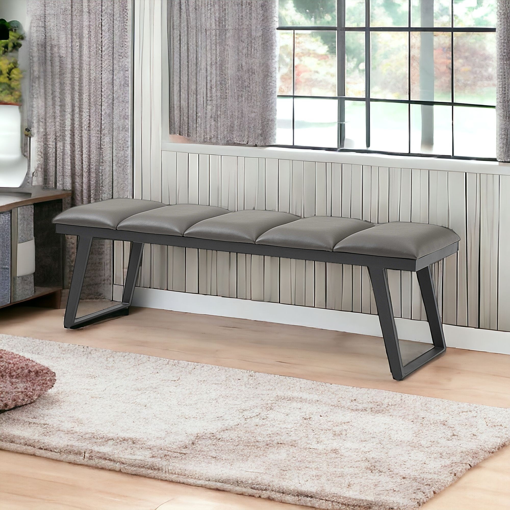 Add a good looking decorative accent to your space that is also practical for seating. A gray coloration runs throughout this good looking metal and upholstery bench. Expertly upholstered with padding in a soft solid color faux leather, this bench is as comfortable as it is good looking. Ideal for entrance foyer, hallway, or laundry room. This bench is a great place store your keys, put on your shoes, or be a catchall on your way in or out. Easy to blend into most any room, a bench is a way to add a good looking accent to your space that can also be practical and useful. . 18-inch H x 57-inch W x 16-inch D