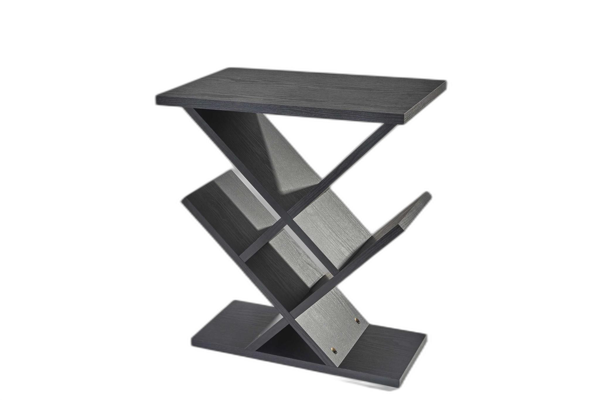 A stylish modern solution for extra storage, this accent table performs double duty. The MDF wood with a black wood grain veneer assembles to provide 8 Deep storage areas for CDs, DVDs, mobile devices, remotes, etc. Use in the living room or as a bedside table. This table has a total weight capacity of about 33 lbs.