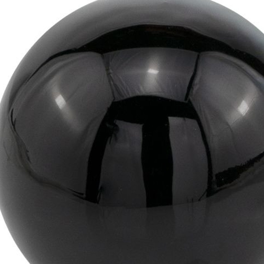 Bring some sizzle to your space with this eye-catching 4-inch black aluminum decorative orb tabletop sculpture that boasts a hand-finished design. Featuring a modern geometric design, this contemporary piece with a shiny enamel coated finish, adds a stylish touch to your decor effortlessly. The sleek lines of this sculpture make it a captivating focal point in any room, perfect for those who appreciate a fashionable and sophisticated aesthetic. 4-inch h x 4-inch w x 4-inch d.