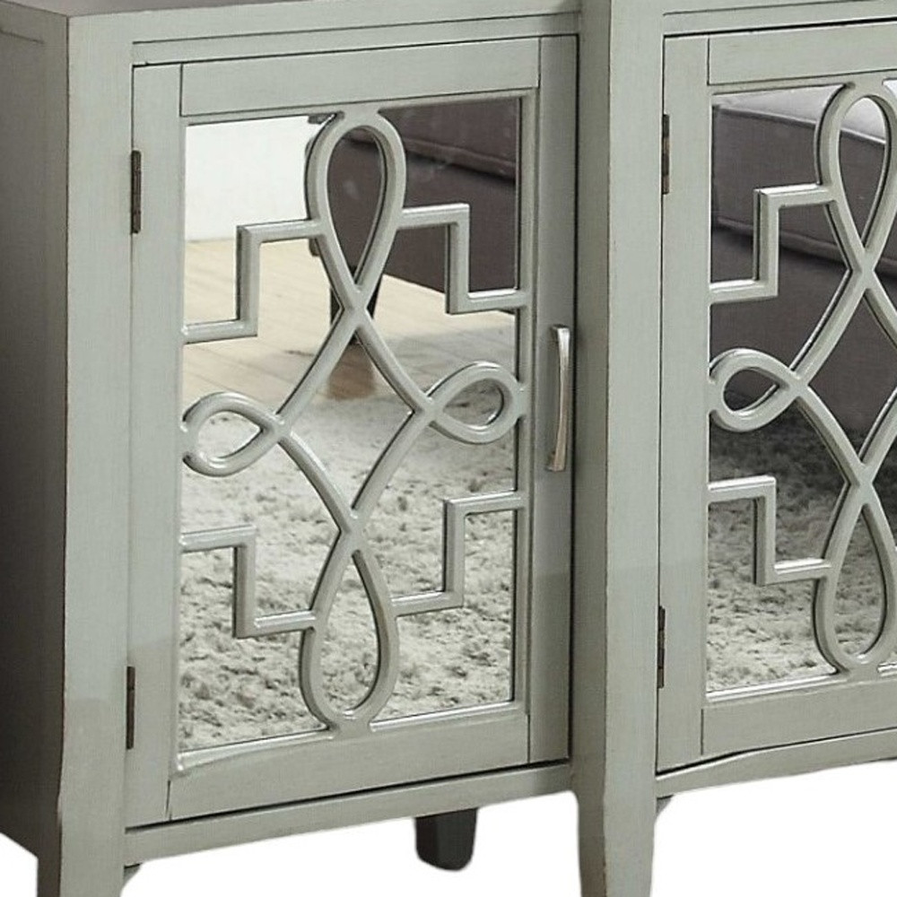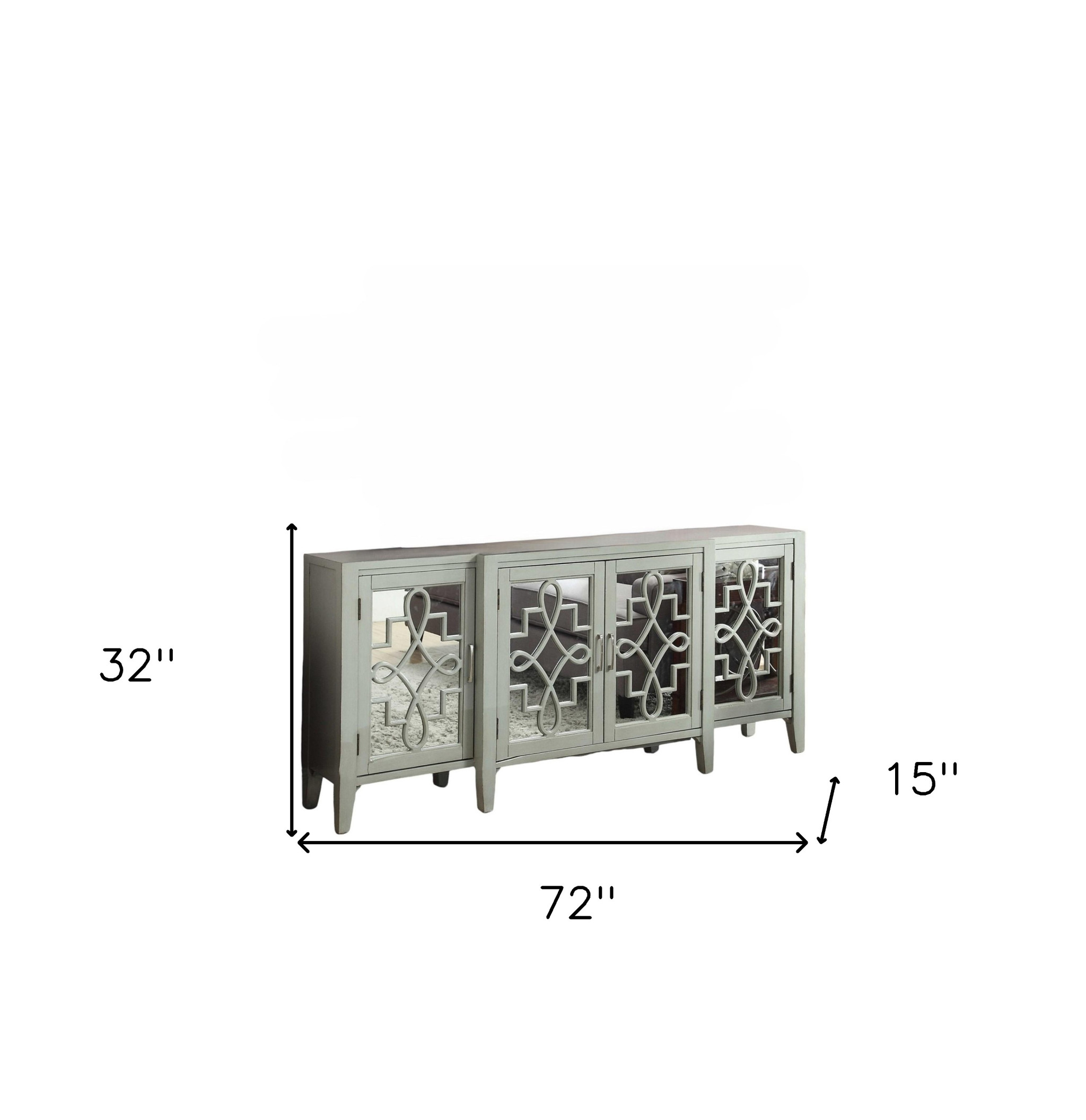 This 72-inch gray and silver mirrored wood distressed solid console table can provide a variety of practical functions such as providing extra storage space, serving as a display area for decorative items or acting as a catch-all for keys, mail, and other small items. This versatile table is a classic rectangular shape, which will easily fit into most any space in your home. This table has a top made with gray manufactured wood that is known for durability and easy maintenance. In addition to a great top, our console table has a high quality glass and manufactured wood solid base that is durable and easy to clean and maintain. Your home will look elegant and pristine with the glass solid base of this console table. Ideal for living rooms, bedrooms, home offices, and lounge areas, this console table is not only good looking but multi-functional and practical addition to your space. 32-inch h x 72-inch w x 15-inch d.
