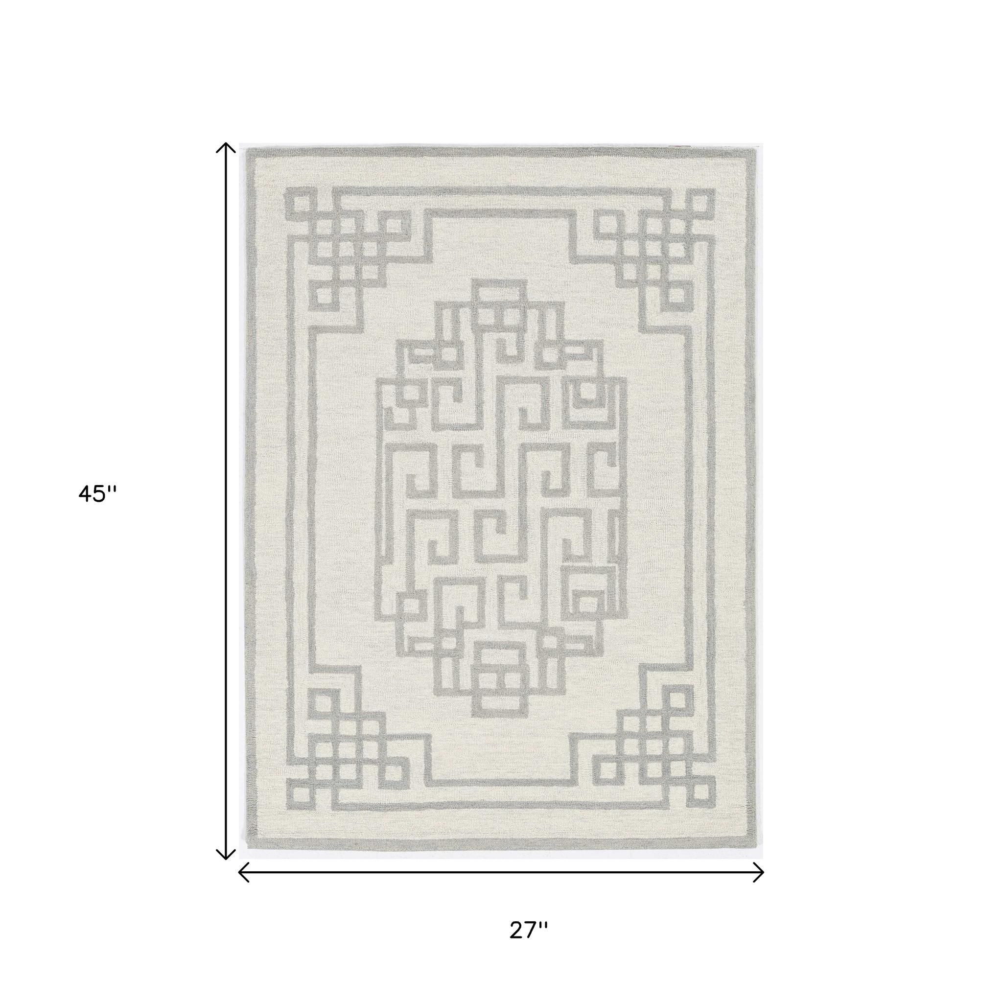 Add some artistry to your room with this 2-foot x 4-foot gray and ivory wool geometric hand tufted area rug. Crafted by skilled artisans, this hand tufted rug is genuine and unique. No two will be exactly alike. Rugs are a great way to showcase your style, hide imperfections, warm your home and reduce noise. This smaller sized, contemporary styled rug is just what you need for your walkway, bedside, in front of door, cabinet, refrigerator, or chair. 27.00-inch h x 45.00-inch w x 0.50-inch d.